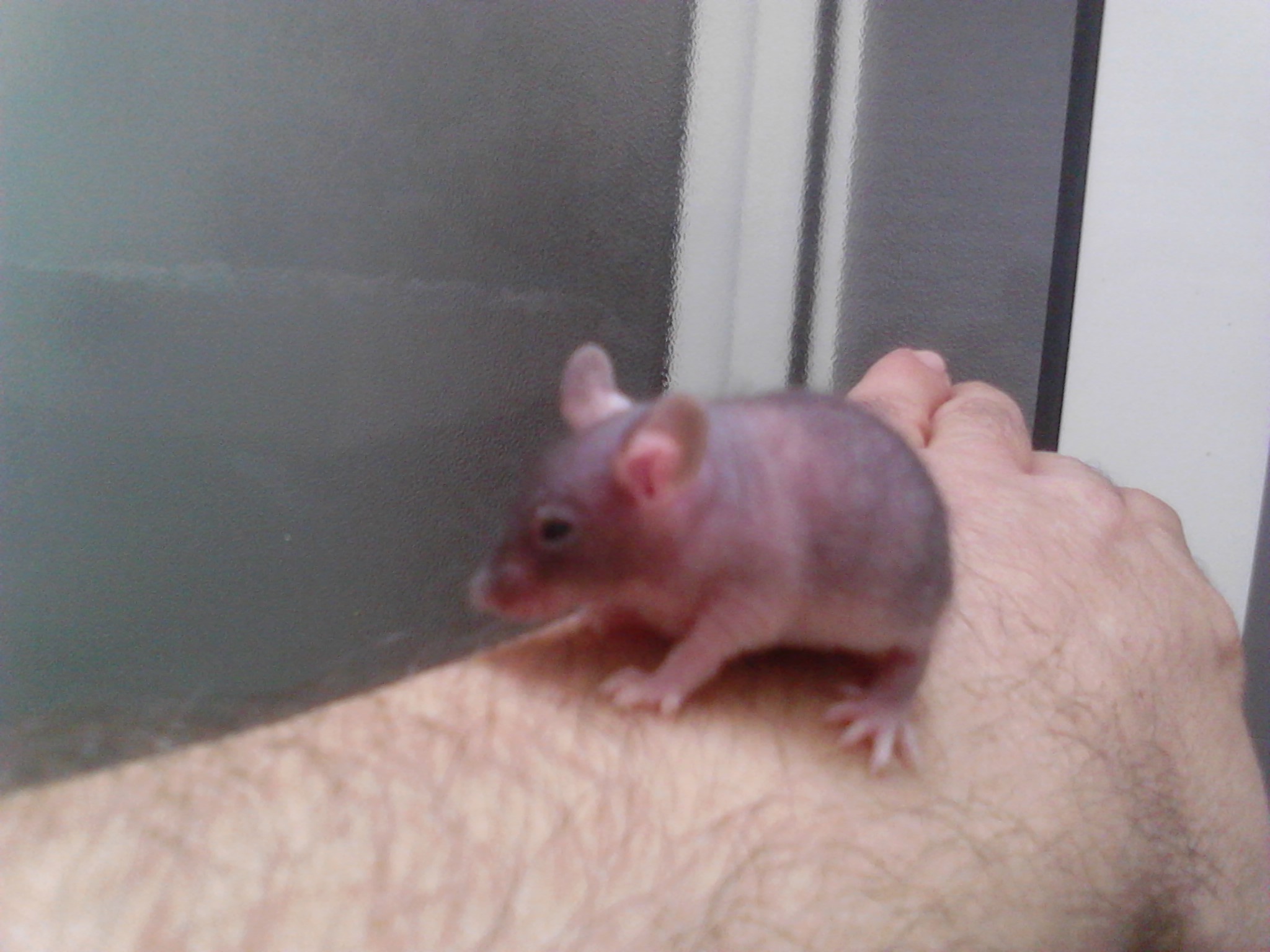 deciros que actualmente esta con cuatro de sus hermanas por parte de madre adoptiva y otra hembrita que adopto su mami tambien (raton de laboratorio), de momento creo que es macho, lo que me sorprende de el, esque ahora es muy manso, puedo tocarlo cojerlo y darle de comer con al mano, al contrario de sus hermanas de colores, marron, negro y blanco, es mucho mas pequeño, pero se defiende bien, ahora toca esperar a ver si monta a alguna hembra, os dejo unas fotos....