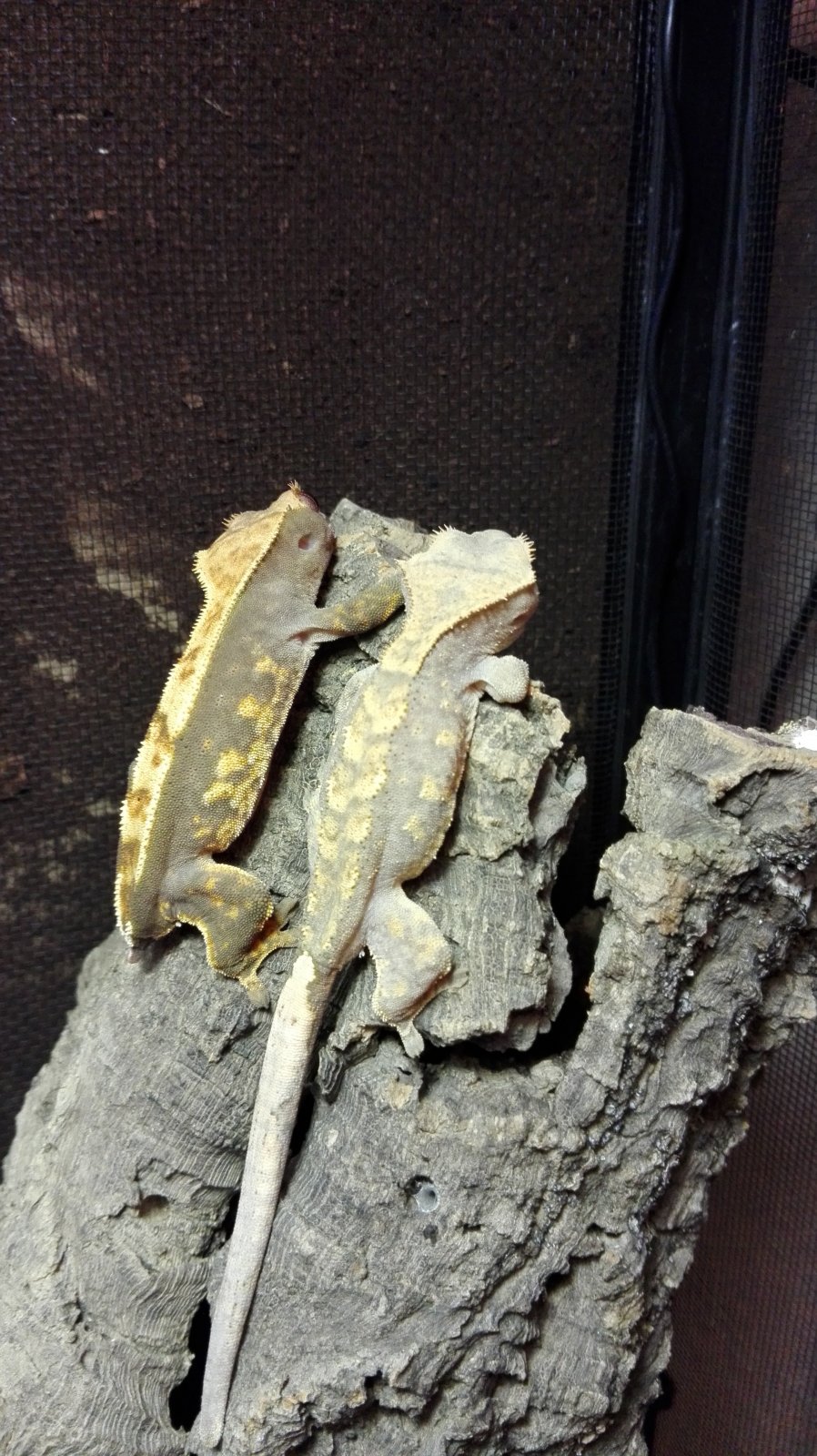 Os cuento, llevo preparando meses un terrarrio para gecko crestado, es de 100x50x50, lo he remodelado para adaptarlo a los hábitos arboricolas de estos geckos, ademas el fondo, las ramas y toda la decoración la he hecho yo. Mi intención era meter un grupo de hembras jóvenes, engordarlas y cuando llegase el momento poder reproducirlas pero he encontrado dos crias quediferentes son hermanos y que me han enamorado, las voy a pillar este finde, no llegan a dos meses y mi duda es si debería meterlas en este terrario o mantenerlas unos meses en un tapper mas pequeño. Otra duda es hasta cuando podre mantenerlas juntas y si tendre problema, ya que en caso de salirme macho alguna tendria que venderla a alguien y quedarme con la hembra. En la expoterraria de Mayo mi intencion es hacerme con alguna hembra joven para aumentar el grupo.