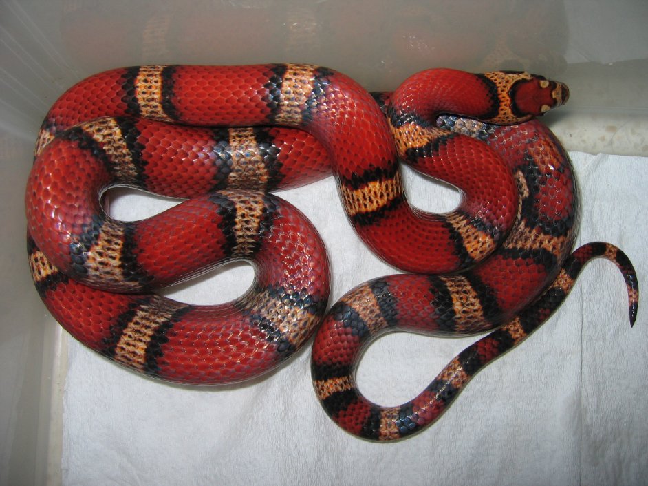 y como deveria de acerlo yo tengo una lampropeltis tr hondurensis tangerina hembra(la de la foto)y pensava piyarme un macho de gutatus motley, yo pienso ke kuando llegue el momento de juntarlas la lampro se coma a la motley porke sera mas grande ke el un cacho bueno. ke opinais??