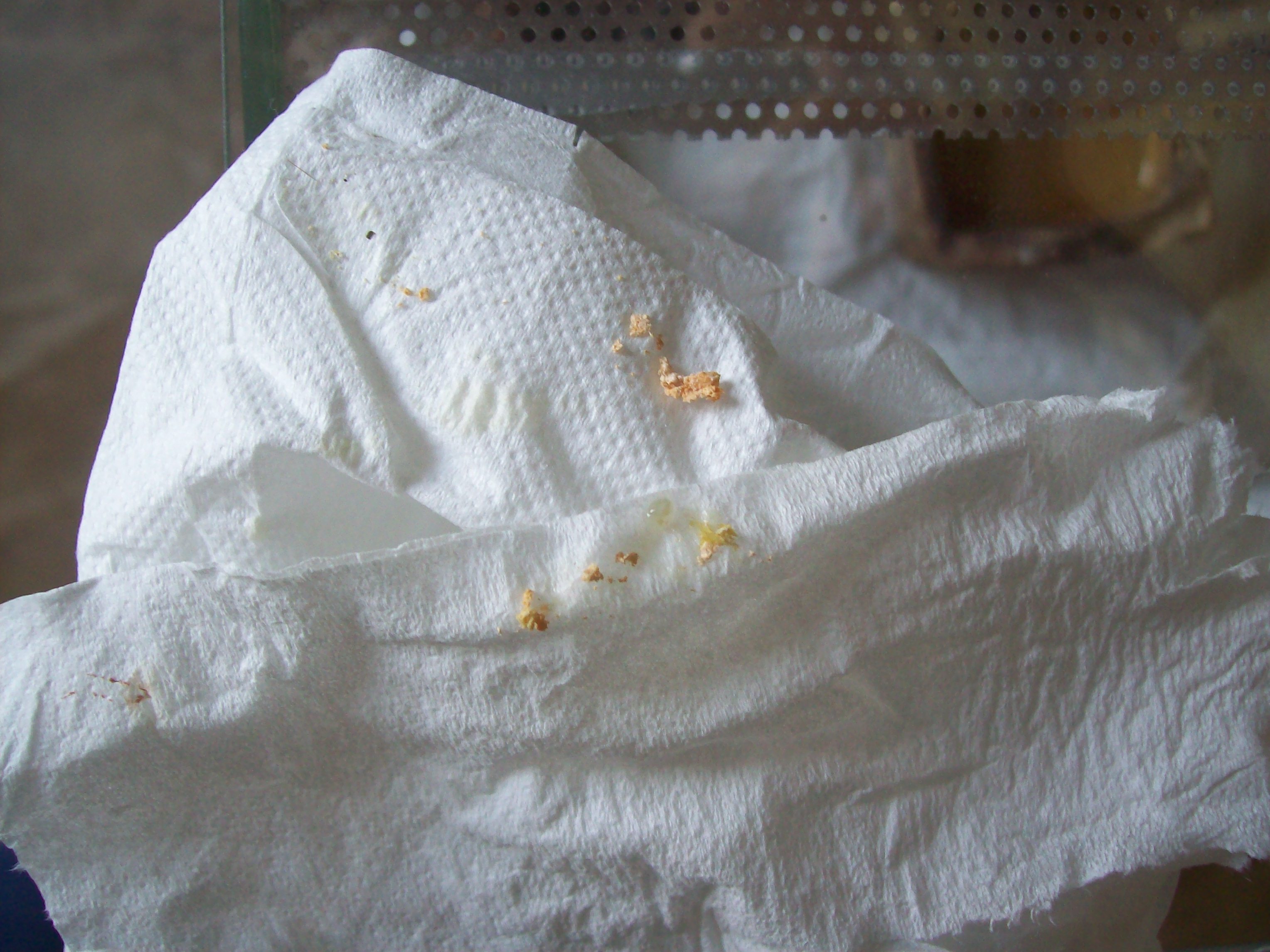 ) como cuarentena y, dada su agresividad y vivacidad, lo tenia por sano. Lo único malo: su delgadez. Estaba muy flaco (no hasta el punto morboso de eubles con crypto terminal, pero flaco con ganas). El muchacho empezó su mala actitud por no comer y sufrir episodios de estrés (propio de un ser salvaje). La inapetencia y su flaqueza me llevaron a la alimentación forzada (error!). Tras un aparente éxito, vómitos y mierda diarreosa (heces poco consistentes me parece una cursilada) precedieron la muerte de la criatura en unos dias por claros síntomas de inadaptación. Durante el acontecimiento, fui lo suficientemente limpio de lavarme las manos después de tocar dos veces hasta el punto de que me dolia ya la piel (eso sí, con jabón de toda la vida). No obstante, en su llegada, el lagartijo corrio por toda la casa y no tuve tales cuidados (error!). También debo señalar que las heces eran malolientes y liquidas pero no tenian el color verdoso cryptodiano. Eso sí, detecté movimiento en ellas (tipo nematodo).