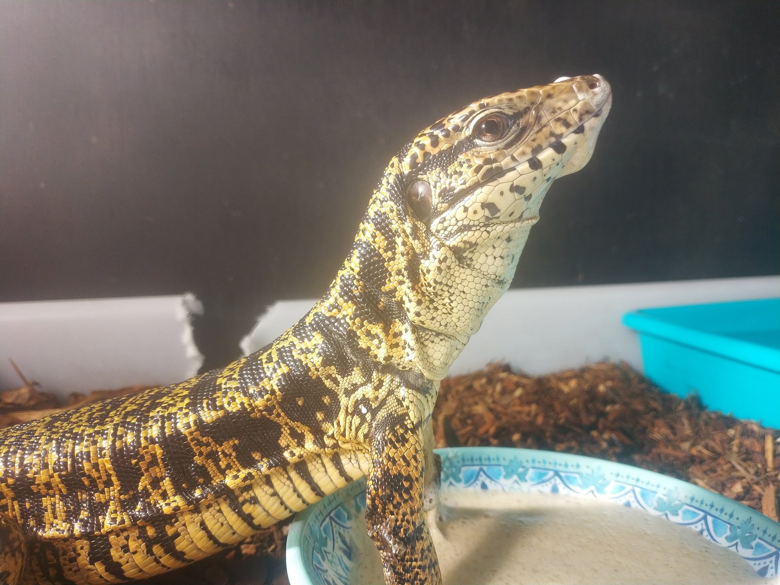 - Tupinambis: me gustan todos, sobre todo el Merininae fase charcoal (los Blue high white tambien, pero crecen demasiado para poder permitirmelo ahora mismo, por lo que tengo, aunque no recomiendo a principiantes, un teguixin, precioso y muy movido, pero muy noble. En un futuro planteo comprarme el que me gusta. De momento solo puedo destacar su inteligencia y voracidad, a parte de como dije, su nobleza, por hambre que tenga, antes de lanzar mordisco, huele a ver si so comida, y se centra en lo que sí lo es.