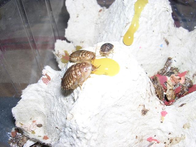 , les he puesto a todos los tuppers de cucarachas (8especies) un bebedero de pájaros con algodón en la base, aunque , personalmente, no creo que valga para nada.