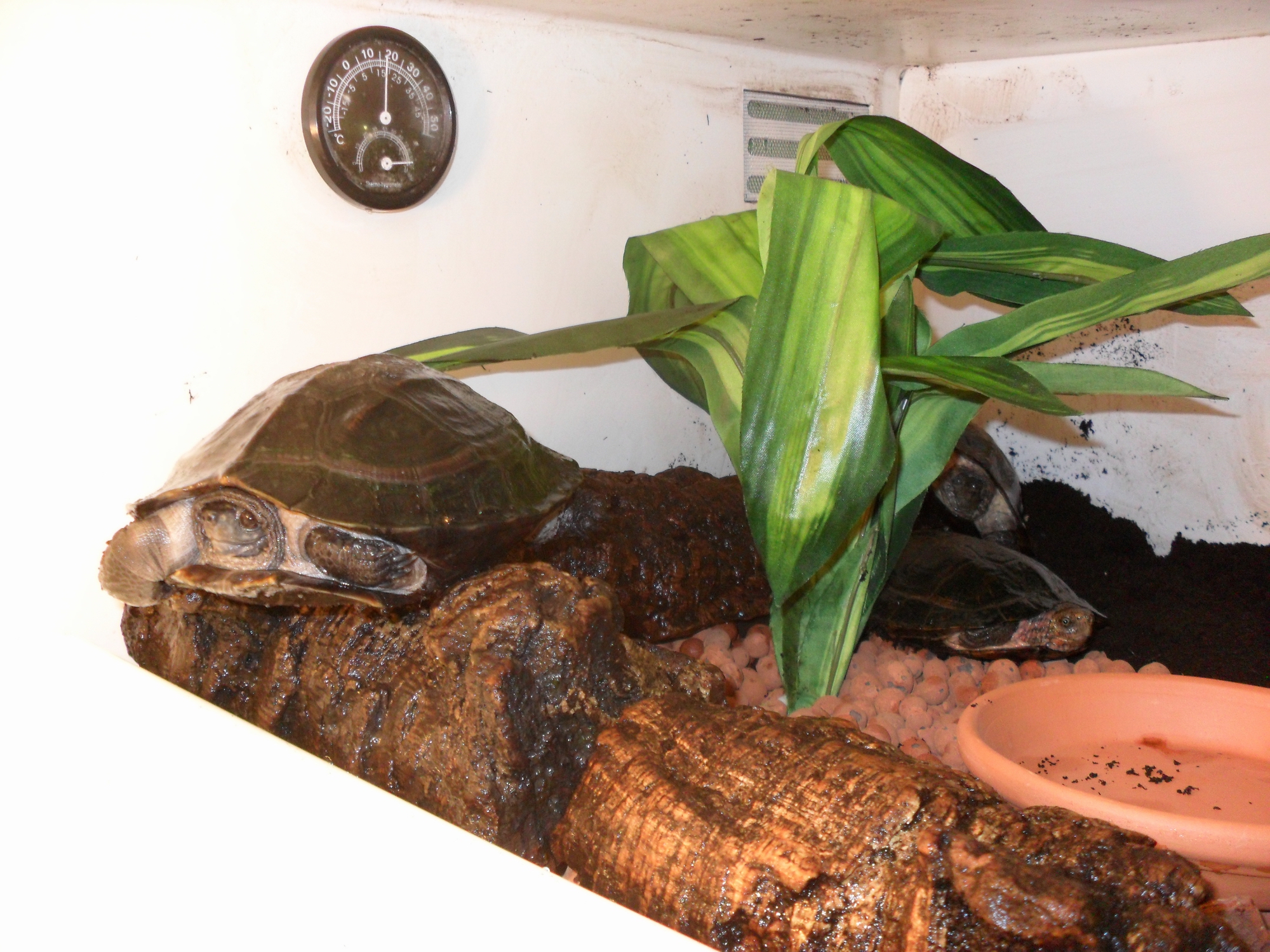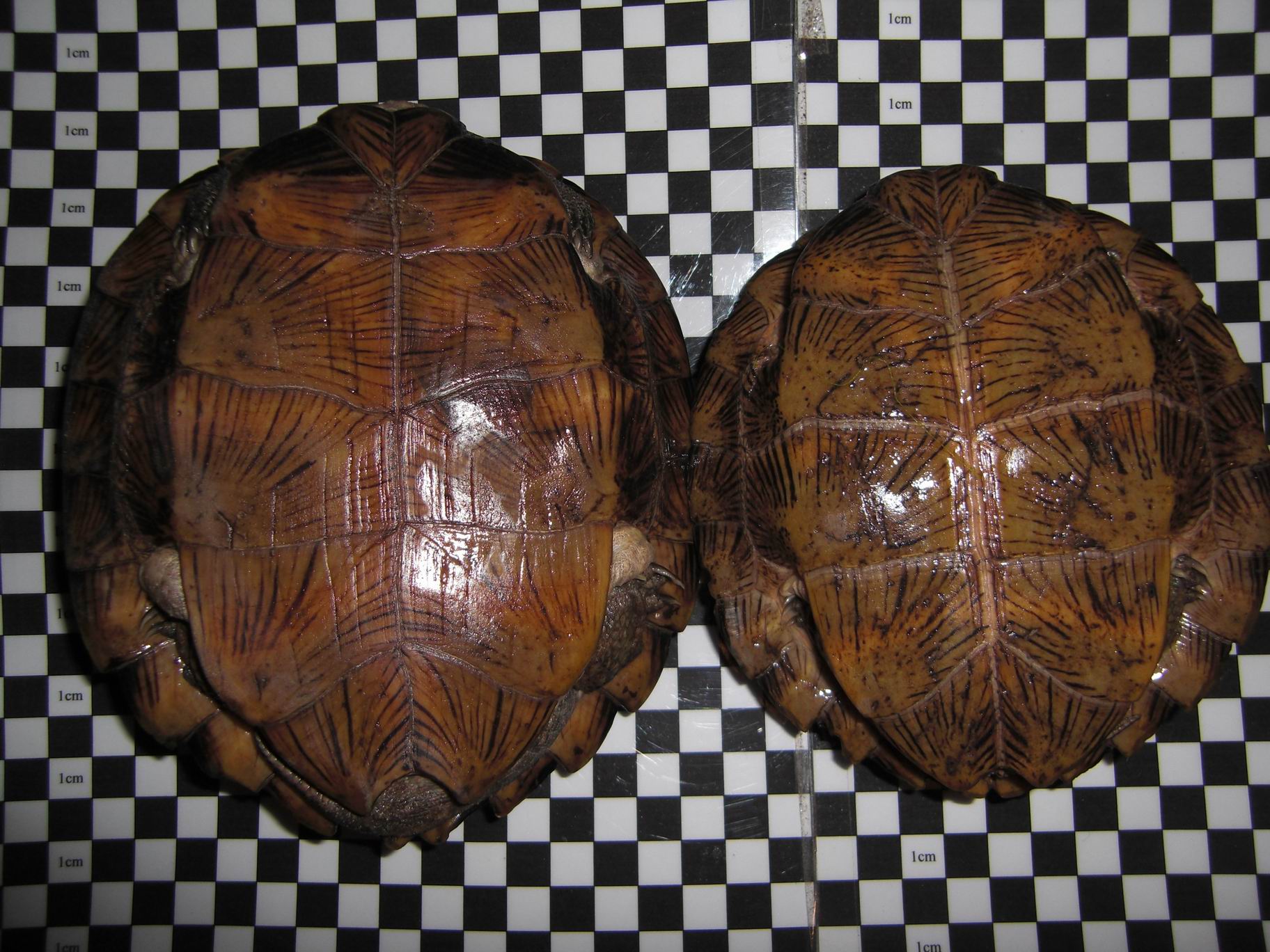 Aunque creo que mis Cyclemys dentata son pareja, quisiera saber vuestra opinión porque lo cierto es que el macho, que es el grande, me parece que no tiene la cola precisamente muy gruesa y demás el plastron es totalmente plano. A ver que opináis.