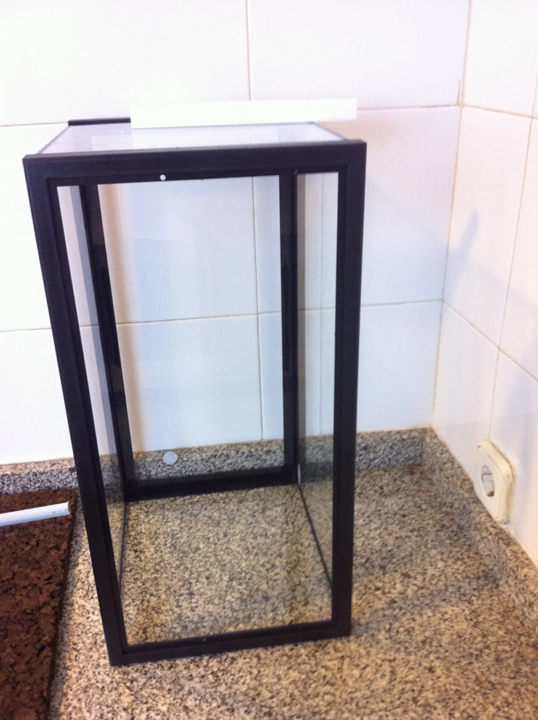 Partimos de un terrario de 38 litros marca Fontana, con unas medida de 51x26x31cm (que acabará teniendo 26x31x51):