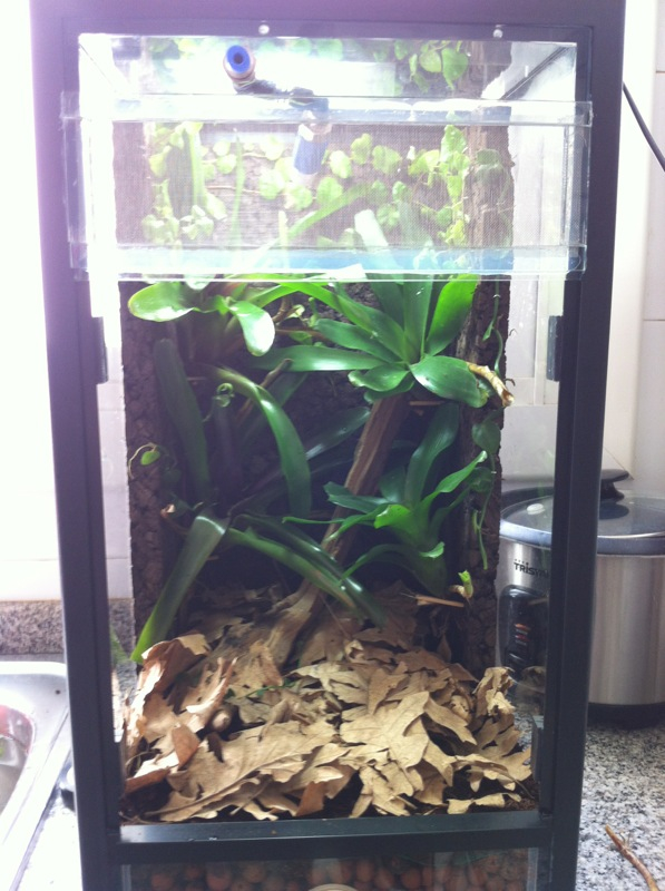 Desde que los tengo funcionando, no tengo ningún tipo de queja o algo que no acabe de funcionar bien. Entre otras muchas cosas....no se fuga ni una sola drosophila! Y que en cuanto te acostumbras a la puerta "abatible" no quieres otro tipo de apertura. Dado que cuentan con desague, el mantenimiento es prácticamente nulo. No obstante, una mejora que incorporaré en los próximos que me haga, será la instalación de una rampa interior para formar un canal en el frontal y así prescindir de la arlita, algo que no me acaba de gustar del todo por los eventuales problemas que podrían surgir al tener plantas terrestres (que las raíces bloquearan la salida del desague o que incluso se metieran a través de el.