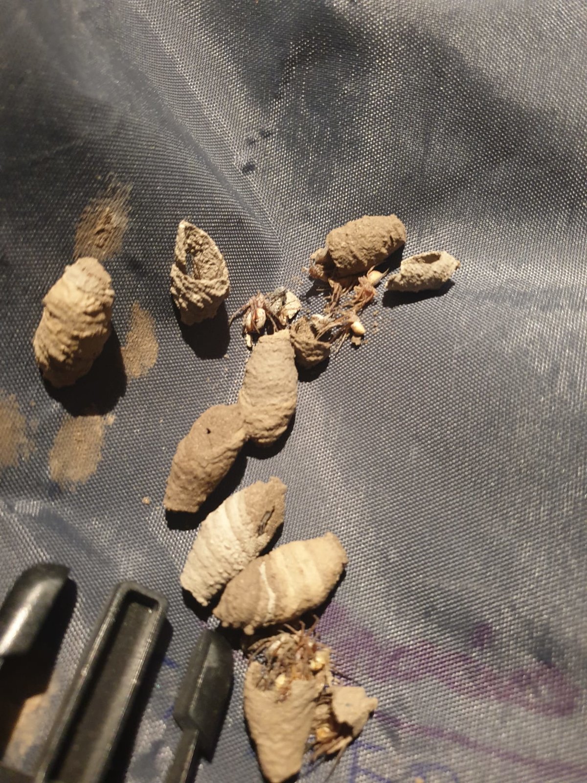 Me he encontrado esto pegados en una mochila en mi habitación. Quería saber qué tipo de araña ha podido ponerlos.