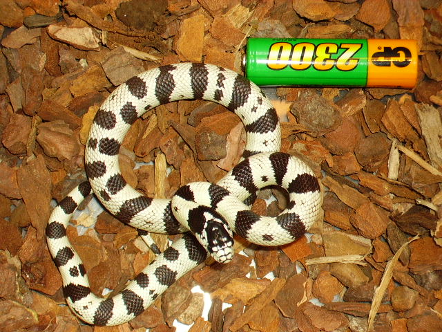HOLA! Hoy me ha llegado a casa una L. getulus Califoniae 50%50, la he comprado por correo, me dijeron que era del año 2004, pero el animal es diminuto, pesa apenas 15gr y no creo que mida mucho mas de 30cm. En fin si alguno de vostros tiene ejemplares de esa misma fecha me gustaria que me dijeseis que tamaño tienen... Yo creo que con esa edad deberian tener un tamaño cercano al adulto...Ya os pondre alguna foto que no quiero molestar a la recien llegada.