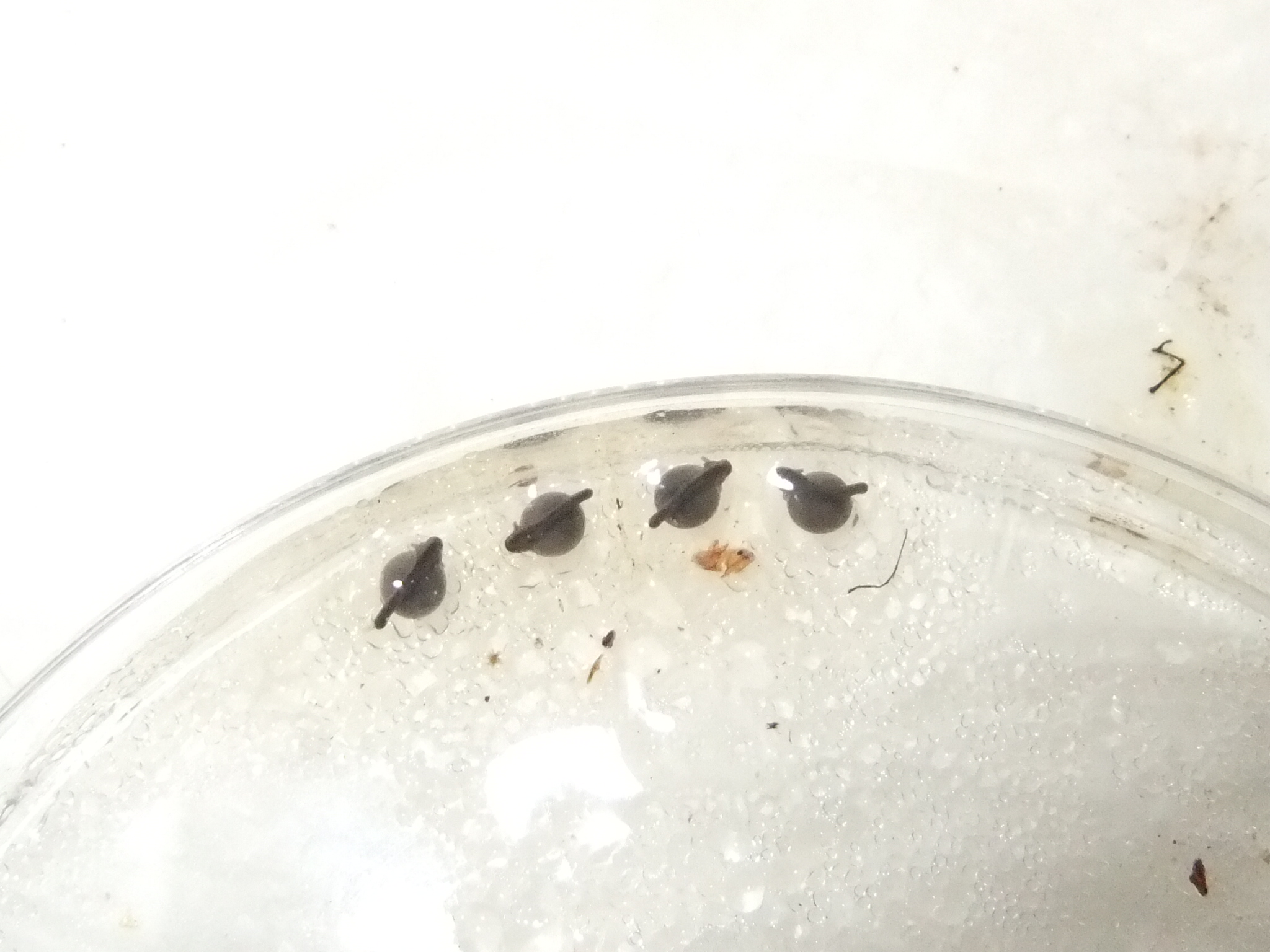 Comparando el único renacuajo de la 1ª puesta con esta 2ª no tenía apenas agallas.
