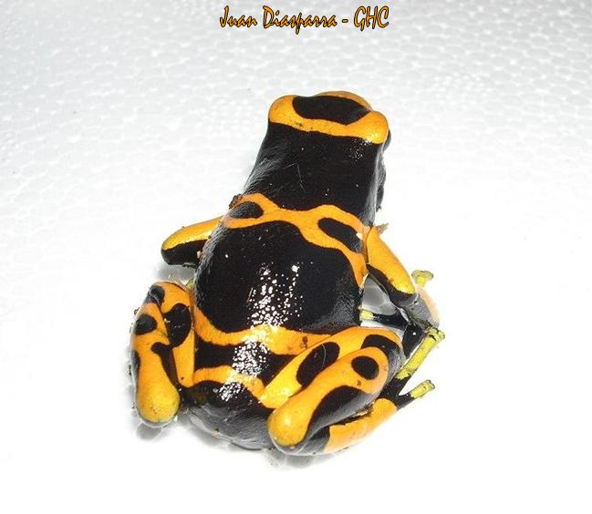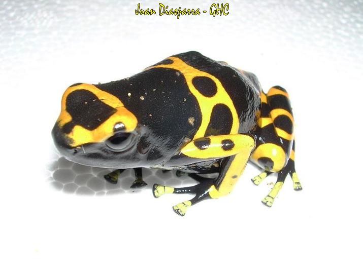 Hola a todos, es un D.leucomelas de Venezuela, trabajo con ofidios venenosos, ayudando en investigacion y todo lo relacionado a la herpetología de mi pais, no la colecte no me gusta colectar anfibios y menos Dendrobates ya que mueren muy rapidos este ejemplar habita en las selvas calidad-humedas del sur de Venezuela, fue llevado al laboratorio y dejado sin nadie que se diera cuenta, alguna parsona q no queria mantenerlo etc etc, aproveche a tomarle unas fotos, aun q se va hacer todo lo posible para q viva, pero D. leucomelas no es tan facil...Bueno como todo dendrobatido, solo mantenerlo comiendo, humedad y un buen ambiente.