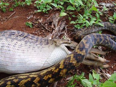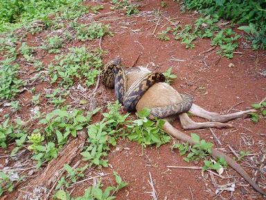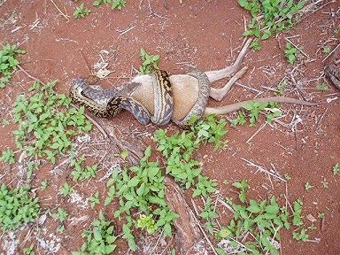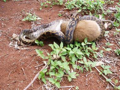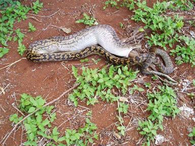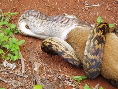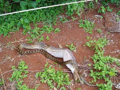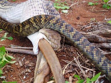 Fabiuko... es una piton australiana y come un animal australiano... en la naturaleza.