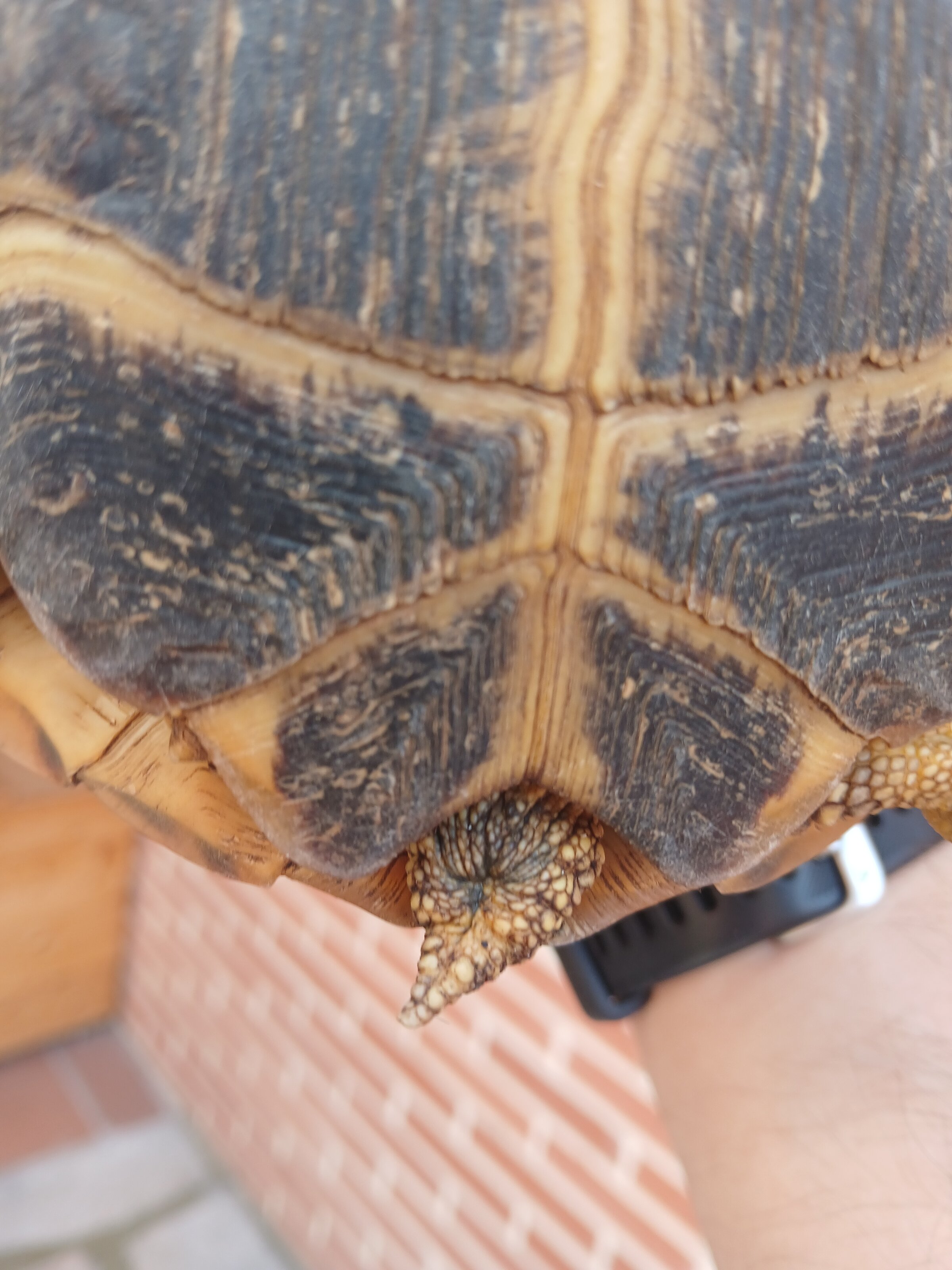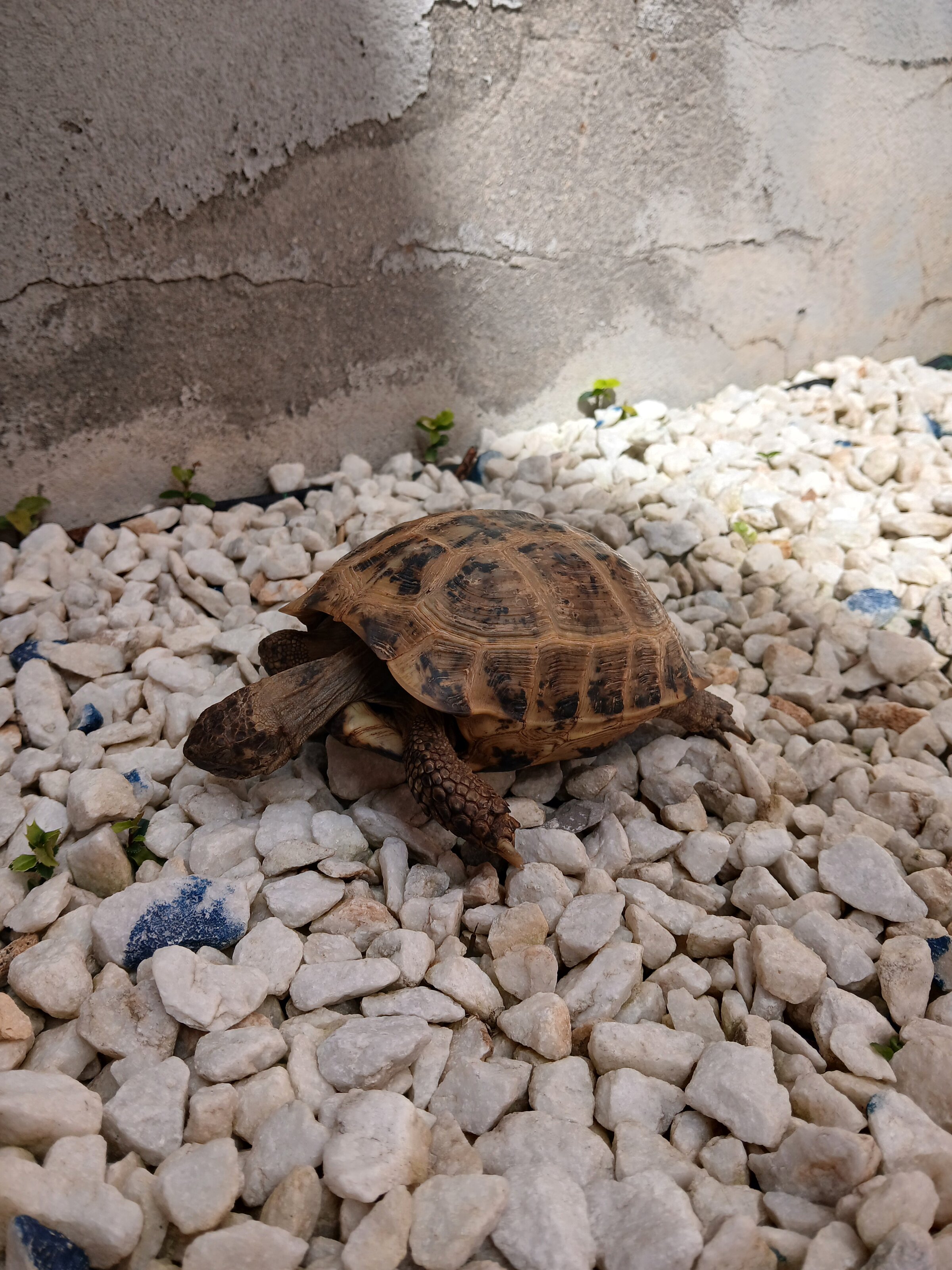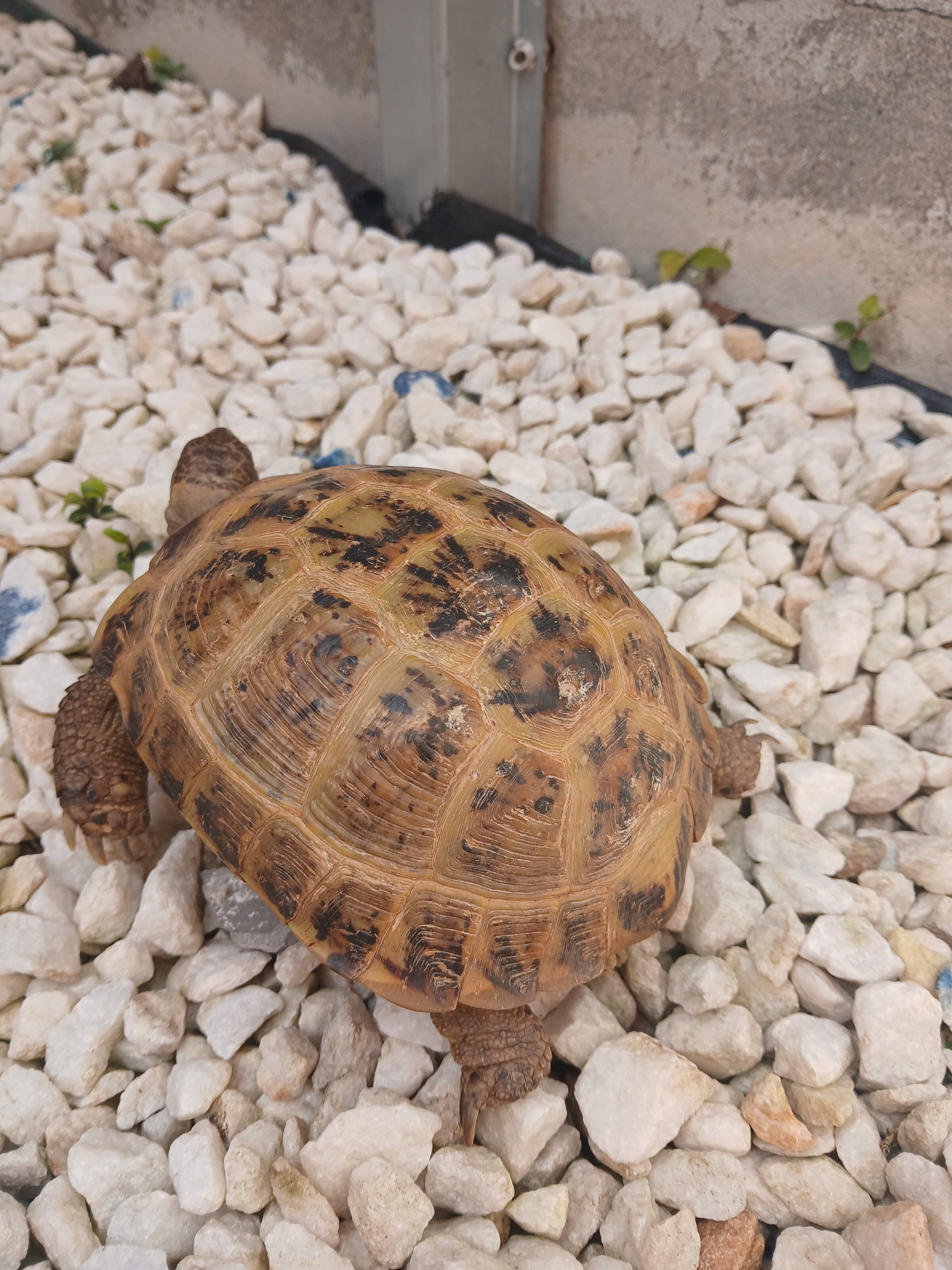 Acabo de ver la tortuga y parece muy sana, por otro lado el caparazon es muy abimbado y redondo sin piramidismo, muy bien formado (sintoma de estar saludable). Yo diria que tiene poco maa de cinco.