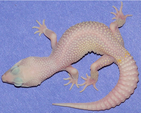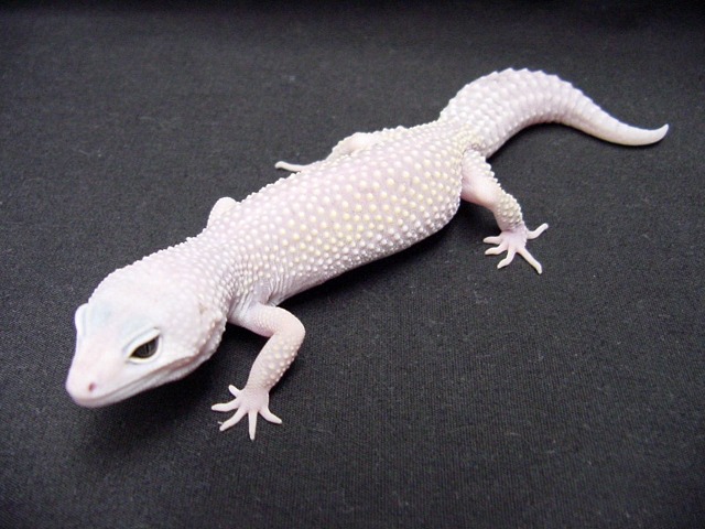 Saludos!! como veo que los "gekeros" no te contestan, yo te puedo decir lo que se (que no es mucho), pero espero que te ayude. Bien, en serpientes los ejemplares llamados "Blizzard" son totalmente blancos, ya que carecen de los pigmentos rojos,negros y amarillos, en estos ejemplares los ojos son rojos. En cuanto a los ejemplares leucisticos el color tambien es totalmente blanco porque tambien carecen de pigmentación roja, negra y amarilla,pero por un defecto intrínsico de la piel, sin embargo la falta de pigmentación no afecta a los ojos que son negros o azules. El leucismo es una forma de variación cromática que se produce de forma natural, en algunas poblaciones de reptiles, mientras que los ejemplars "Blizzard" son fruto de los cruces genéticos... en fin no se si esto se puede aplicar a los geckos y si yo estoy en lo cierto... si no fuera correcto algo de lo que digo, me gustaria que me rectificarais.