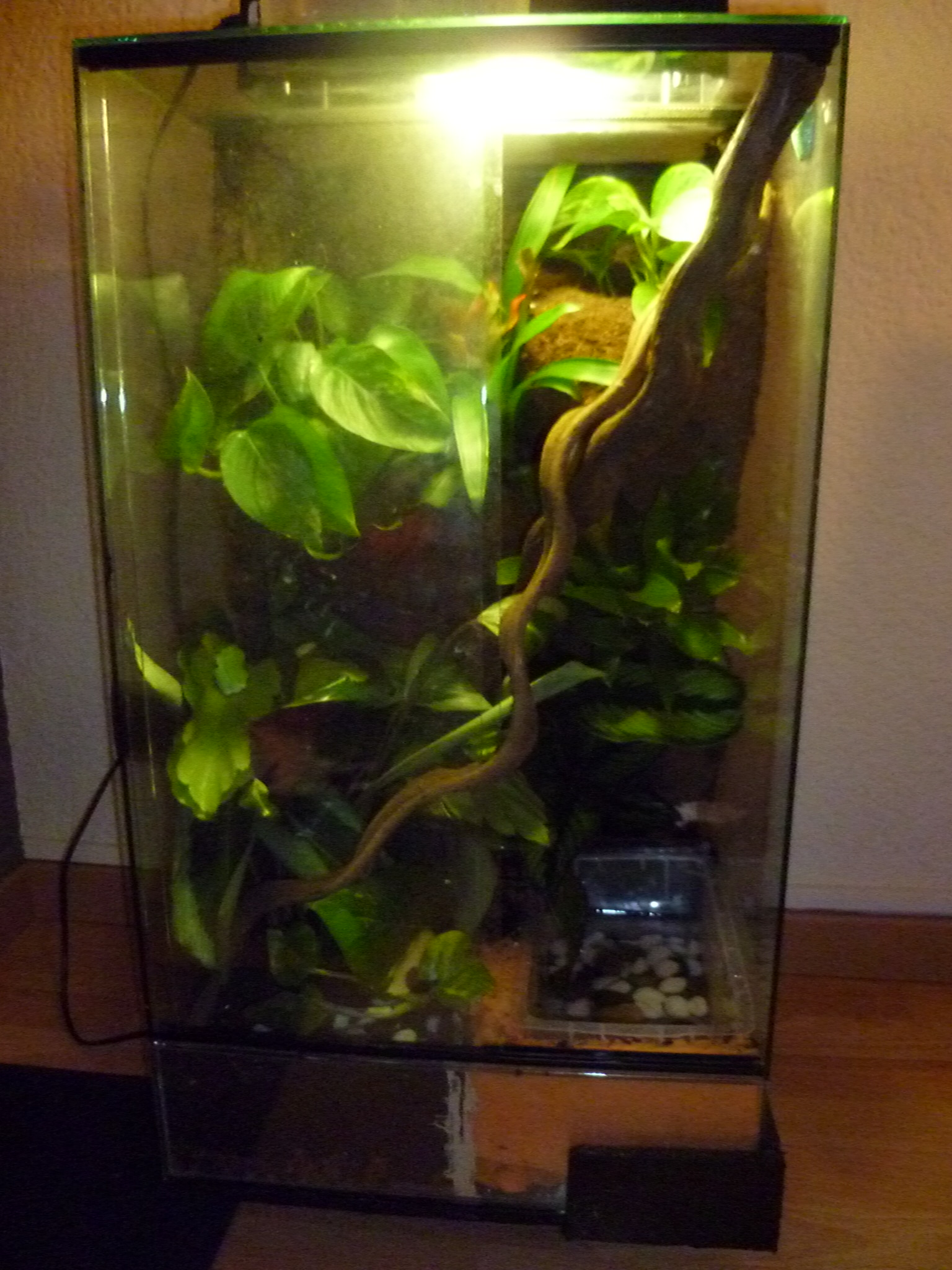 Hace cosa de un par de semanas hice un terrario para Agalychnis callidryas, me quedo bastante chulo, pero no pense en donde colocar fuente de calor.