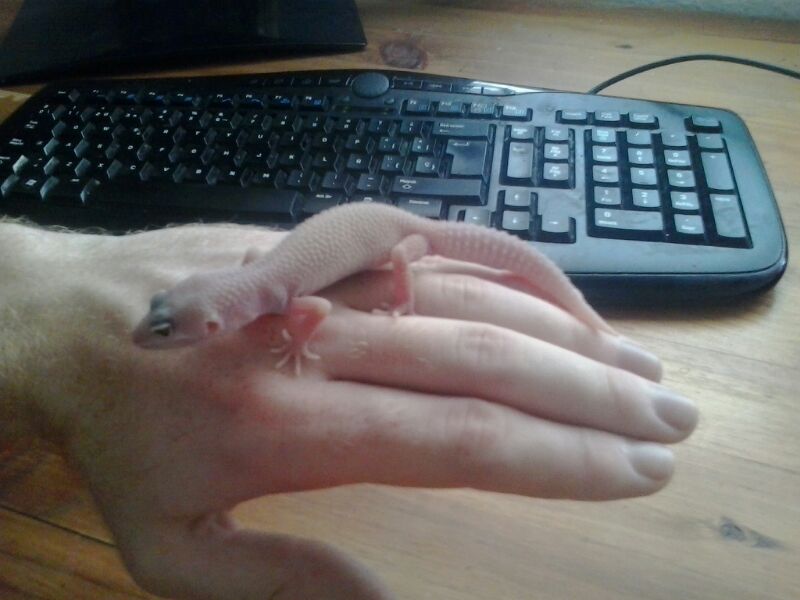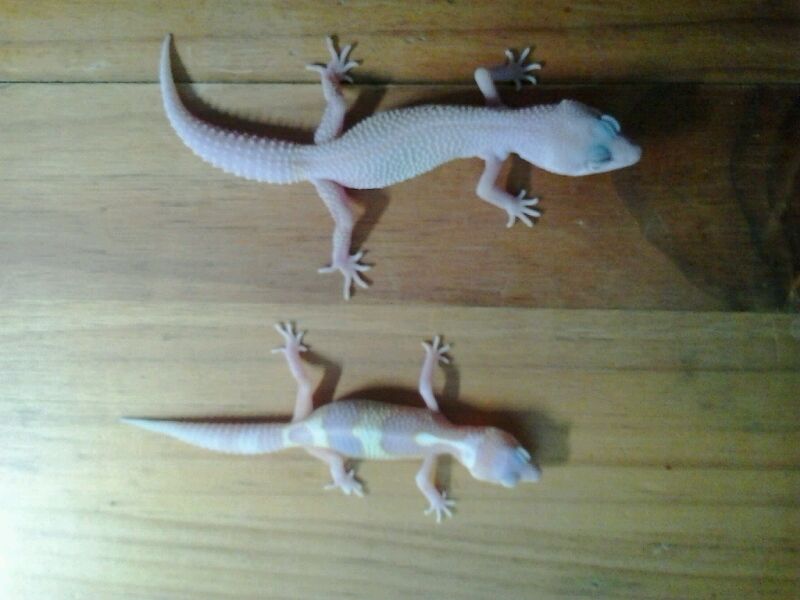 Hola :D Hace poco me compré dos geckos nuevos: una hembra tremper albino eclipse y un posible macho blazzing blizzard (digo posible porque al principio pensábamos que era un macho pero ahora estamos dudando). A ver si les hago unas fotitos y las subo porque como no paran quietos es imposible :mad: