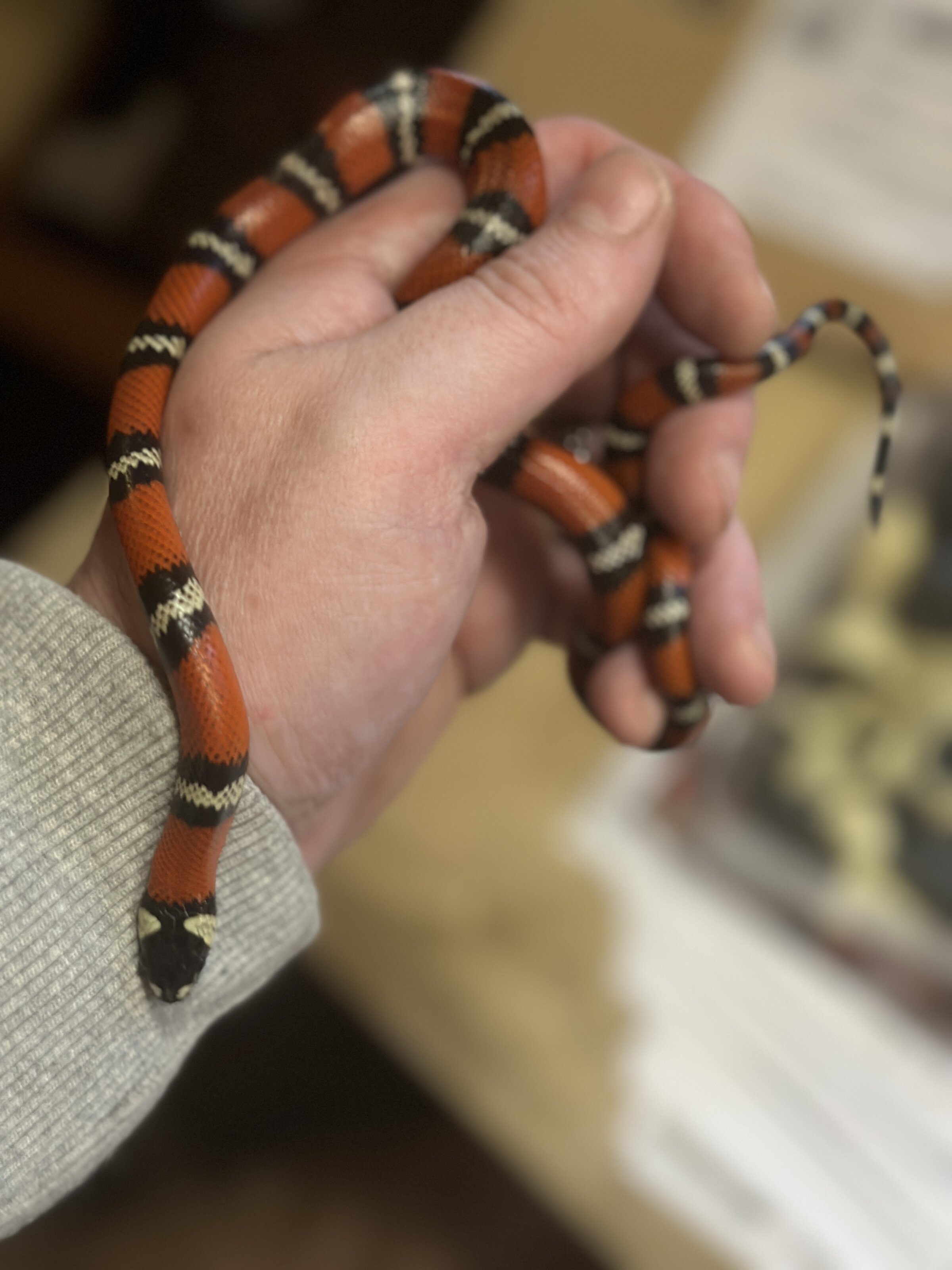 Muy buenas noches. Tengo una lampropeltis que compré como sinaloae pero que se parece más a una nelsoni. Pongo fotos por si alguien me puede sacar de la duda. Quiero comprar una lampropeltis sinaloae pura y mi pregunta es si puedo tenerlas juntas en un mismo terrario. Sé que con una rey de california no sería posible pero no sé si pasaría lo mismo con la que tengo y la que quiero comprar. Agradeceré vuestra ayuda para salir de dudas.