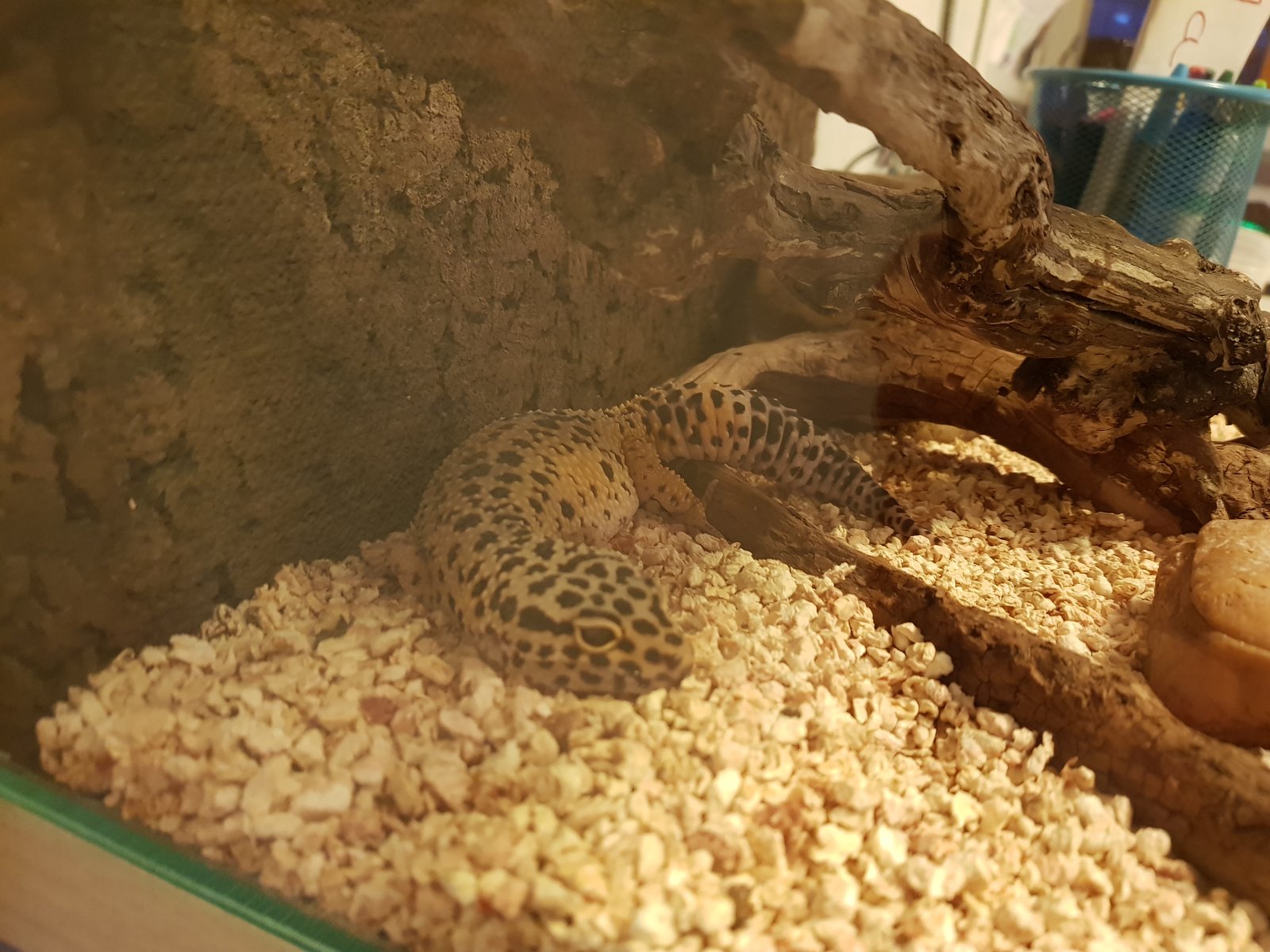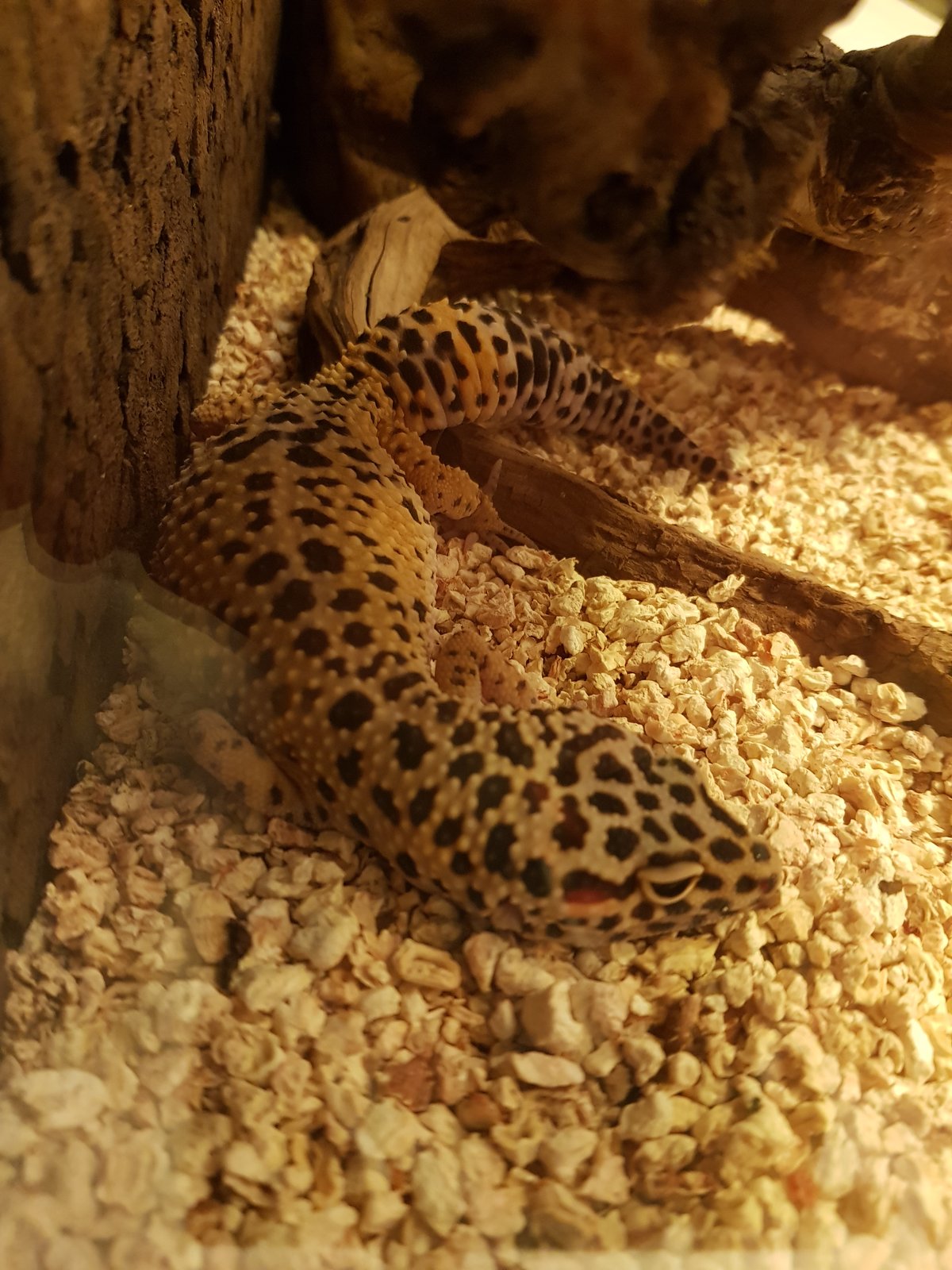 Tenemos un gecko hembra de 2019. Siempre ha comido genial pero desde hace 2 semanas y media esta apática y no prueba bocado como antes. Mudó hace 15 días, desde entonces ha defecado una vez algo raro, a la semana solo un grano de arroz blanco y ayer tras 2 baños que nos recomemdo el chico de la tienda una caca normal. Estará bromeando. La temperatura la tenemos ahora en 3p grados la zona caliente, le hemos vuelto s poner hoy maíz de momento.estuvo con turbs y quizás cogió frío y humedad. Os pongo fotos. Pesa ahora 81 gramos. ¿Que opináis?