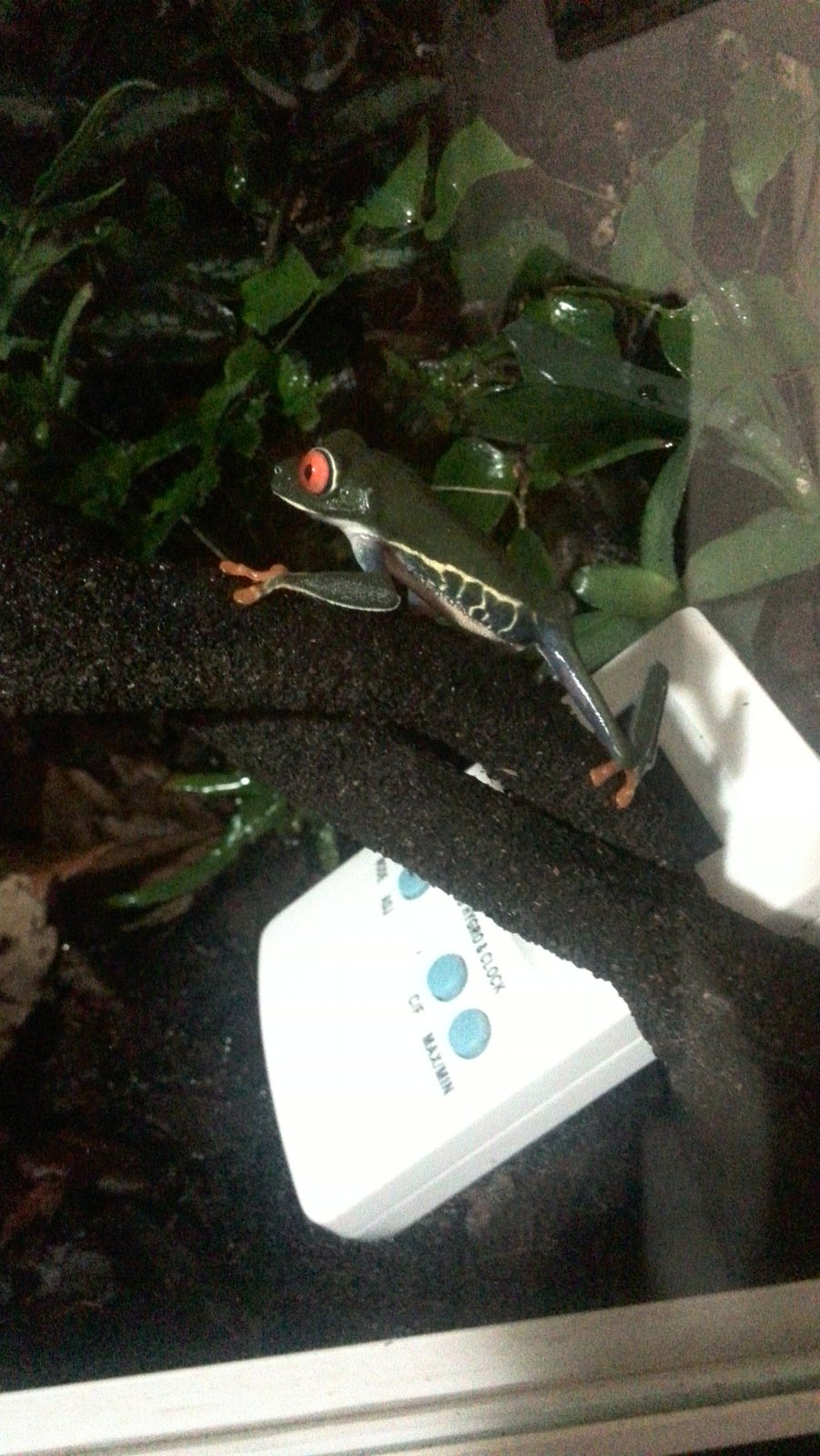 ya no las tengo en el taper que solo las mantuve alli una par de semanas ahora las tengo en un acuario de los chinos tambie jeje de unos 30-35 litro con la paredes laterales y trasera con panel de fibra de coco, papel de cocina de sustrato y sistema de lluvia, con una tapa improvisada de plastico y mosquitera, cable calefactor y los parametros los mantengo perfectamente, temperatura dia 28 grados noche 22 grados y humedad en trorno a los 80%,