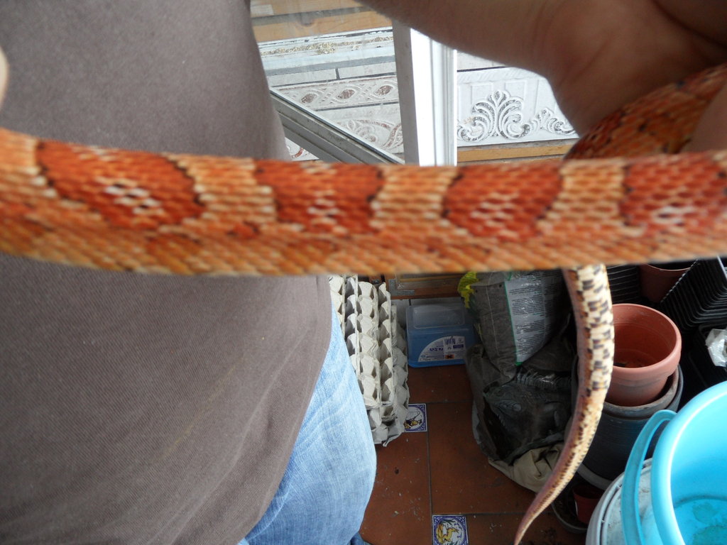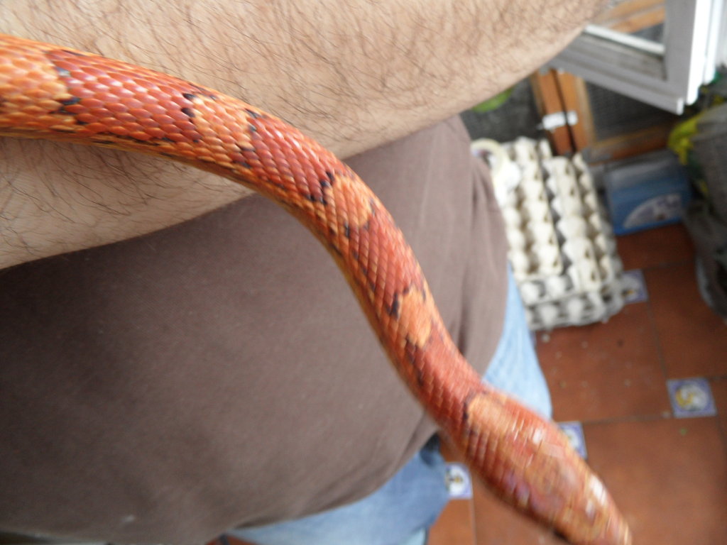 Tengo esta Pantherophis guttatus desde hace cuatro años, siempre la he tenido como nominal, pero el color es un poco similar al hypomelanico, quería saber vuestra opinión