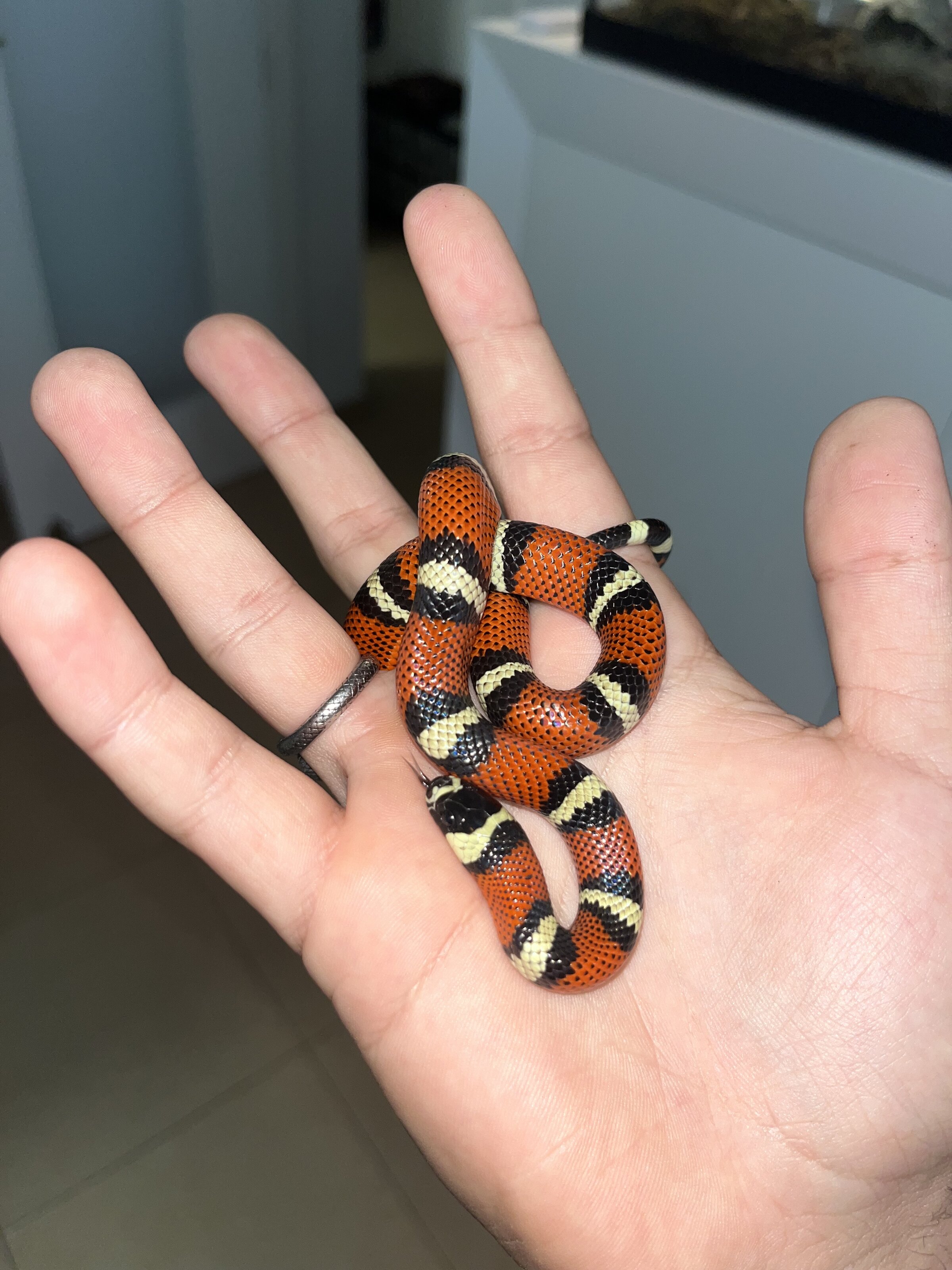 Hola a todos! Soy nuevo en esto de los reptiles y tengo una duda por una supuesta lampropeltis triangulum sinaloe que adquirí. Se supone que es una falsa coral de sinaloa pero no encuentro ningún panfleto o página que salgan todas las subespecies con sus diferencias. Espero que alguien pueda identificarmela o la mezcla que tenga. Gracias de antemano