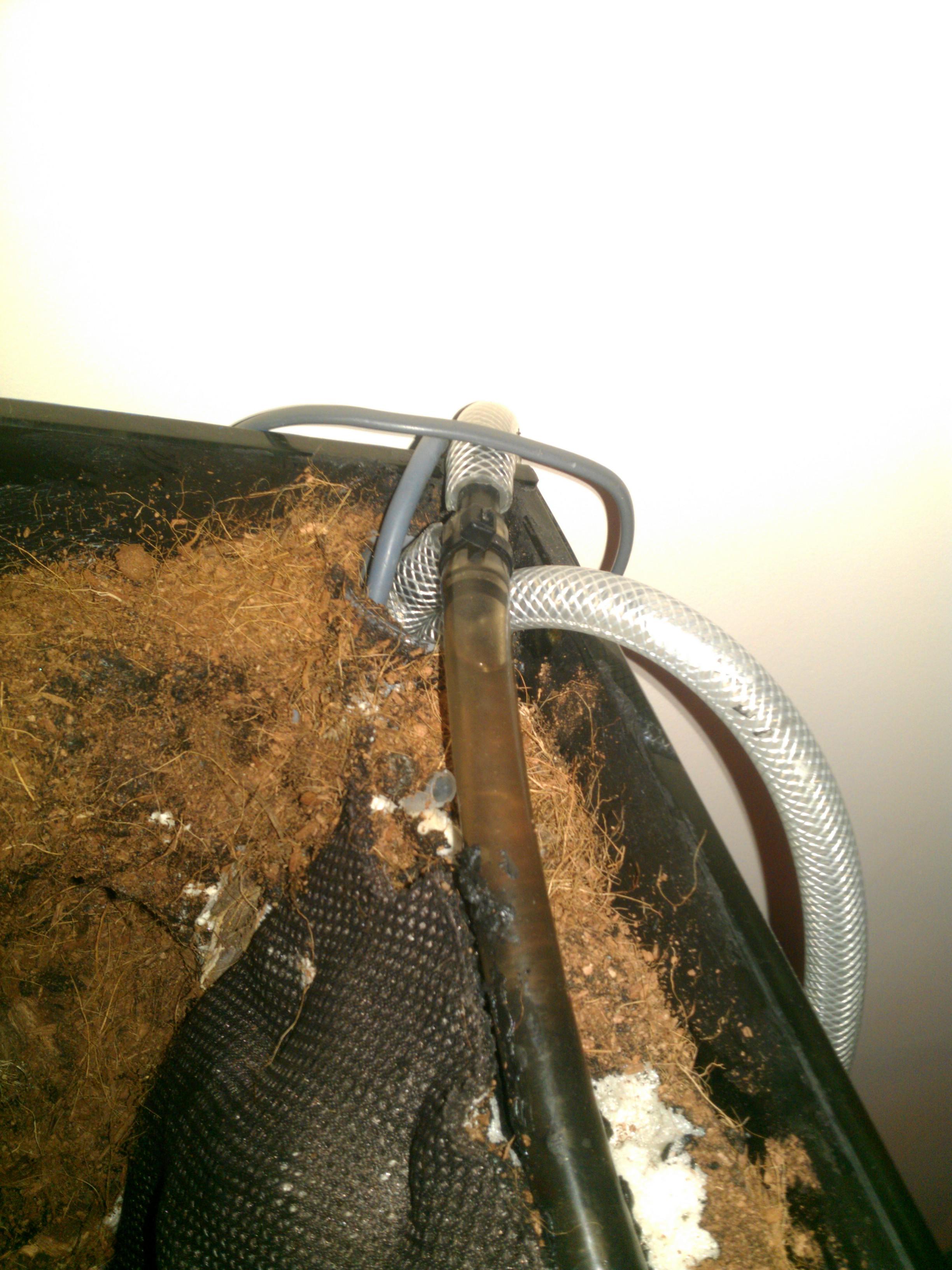 También perforé el tubo vertical para sacar otro tubo que regará lentamente el lateral donde hice un fondo con hygrolon. (iré poniendo fotos)