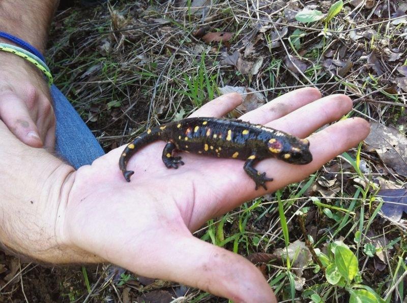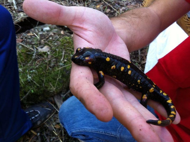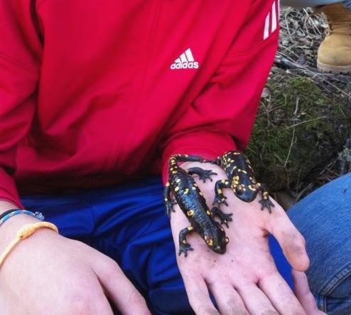 Por cierto, esta mañana organice con algunos amigos y con mi hermano, una excursión a la Sierra Norte de Sevilla. Hemos estado en Cazalla de la Sierra, con la intención de conseguir avistamientos de anfibios y reptiles. Nuestro principal objetivo era poder tener en nuestras manos por unos instantes al, para mi gusto, urodelo más espectacular de la Península Ibérica, la salamandra común.