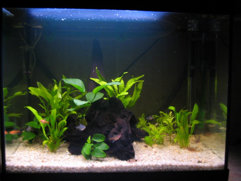 El acuario ha pasado y pasa por épocas de cuidado y de dejadez, de selva y de raso en plantas, de agua verde verde y de agua transparente. Y solo tiene a los guppys (cuando esta atendido) de octubre a mayo. De mayo a octubre los guppys al estanque y el acuario "olvidado".