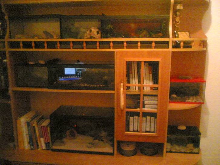 pues yo estaba pensando ahora en aumentar el terrario del euble y quitar los libros q tiene al lado y pasarlos al otro lado donde se ven libros y cintas de video, y tambien me entrna dos terrarios peqeuños como el de la bombina, que valen para anfibios y artropodos no muy grandes, pero eso aun no, aun no xDD
