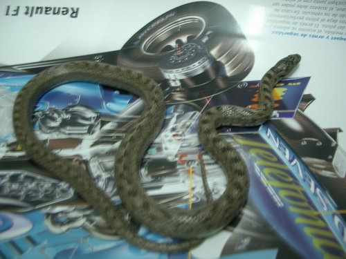 Pues si, un amigo nos a traido una serpiente que se han encontrado en un jardin en Vallekas, creo que es una elaphe scalaris, aunque no estoy muy seguro, medira unos 45 cms, esta tarde cuelgo unas fotos para que me lo confirmeis, pero me da que es una escalera, estoy casi seguro.