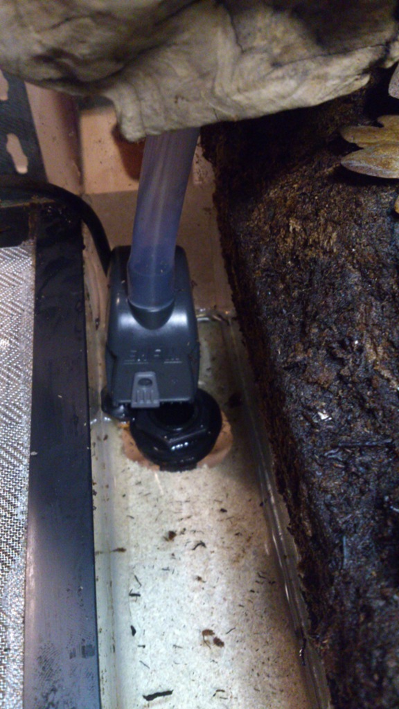 La bomba simplemente la he colocado en la parte acuática delantera del terrario, donde se irá acumulando el agua de las lluvias. La he cubierto con unos trozos de EPIWEB cortados a la medida, para que no vaya a parar ninguna porquería hacia la bomba ni el desagüe....