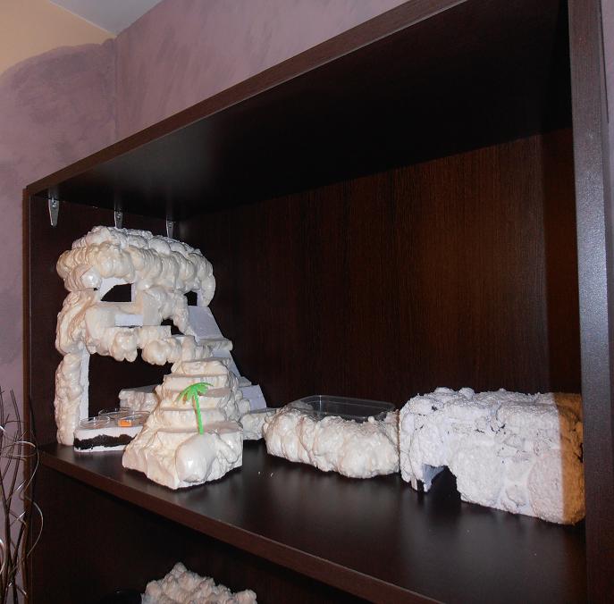 Mi idea es aprovechar un mueble que no utilizo de "Iquea", vaciarle las tripas y dejar el hueco 97cm acho x 47cm fondo x 116cm altura para hacer varios terrarios, uno de ellos para una pareja de eubles. El tema es que voy estudiando como hacer el reparto de las medidas de los terrarios y me gustaría saber la altura mínima que podría tener el terrario para la pareja de eubles. Tenía calculado 97cm acho x 47cm fondo x 35cm de altura, pero si pudiera reducir la altura me vendría bien para darle mas altura al terrario del camaleón. Podría bajar de los 35 cm de altura?, hay que tener en cuenta que me gustaría ponerle algún tipo de iluminación, aunque fuera de poca potencia. Si me podéis decir cual me vendría bien. Saludos y me alegra estar por aquí otra vez.