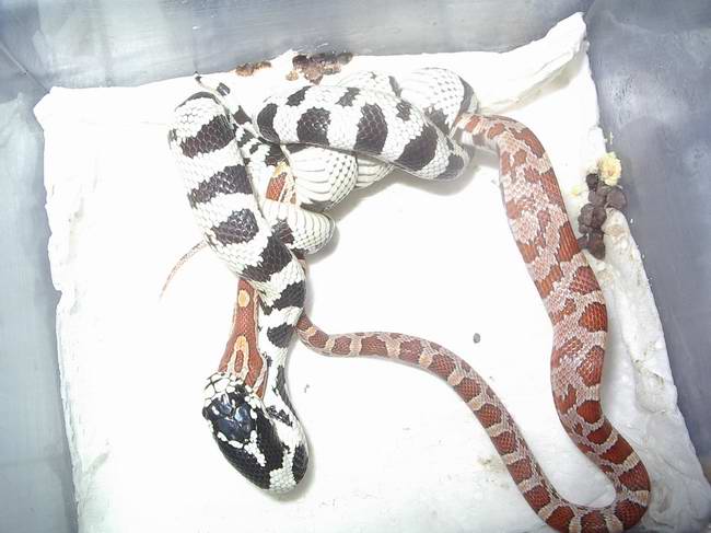 No sera malo para la lampropeltis comerse otra serpiente que casi es de su mismo tamaño?