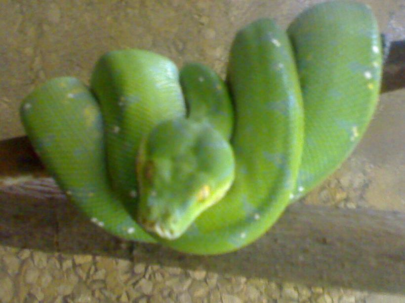 hace poco me compre una viridis y estoy muy contento con ella salvo por una cosa que me inquieta demasiado.el caso es que la serpiente come fenomenal ( de momento todo lo que le dado se lo ha comido ) pero a la hora de comer vivo no hay manera de que la serpiente agarre al raton , y no porque este se mueva velozmente sino porque directamente no atina a cogerlo.cuando come muerto le doy con pinzas y todo va bien pero las 2 veces que le he dado vivo no ha habido manera de que pillara el raton.es normal ?? otra cosa es que no tira a morder nunca fuera del terrario creo que me ha salido demasiado buena o demasiado tonta diria yo ya que ratones vivos no coge ni uno.bueno haber si a alguien le ha pasado algo parecido y haber si pongo una foto y me decis de que localidad es.creo que es sorong por las manchas azules que le han salido pero haber si le hecho un par de fotos y me decis vosotros algo porque no tengo mucha idea.