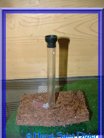 Como se ve abajo, he adjuntado lo que comenté, un esquema general que hizo un tio de un terrario para rangeis... el personaje utiliza un tubo para conducir el agua hasta abajo, donde ha colocado fibra de coco para que retenga la humedad... entonces teoricamente el agua humedecerá primero lo de abajo, y subirá poco a poco... además, ha colocado el refugio cerca de la vermiculita...