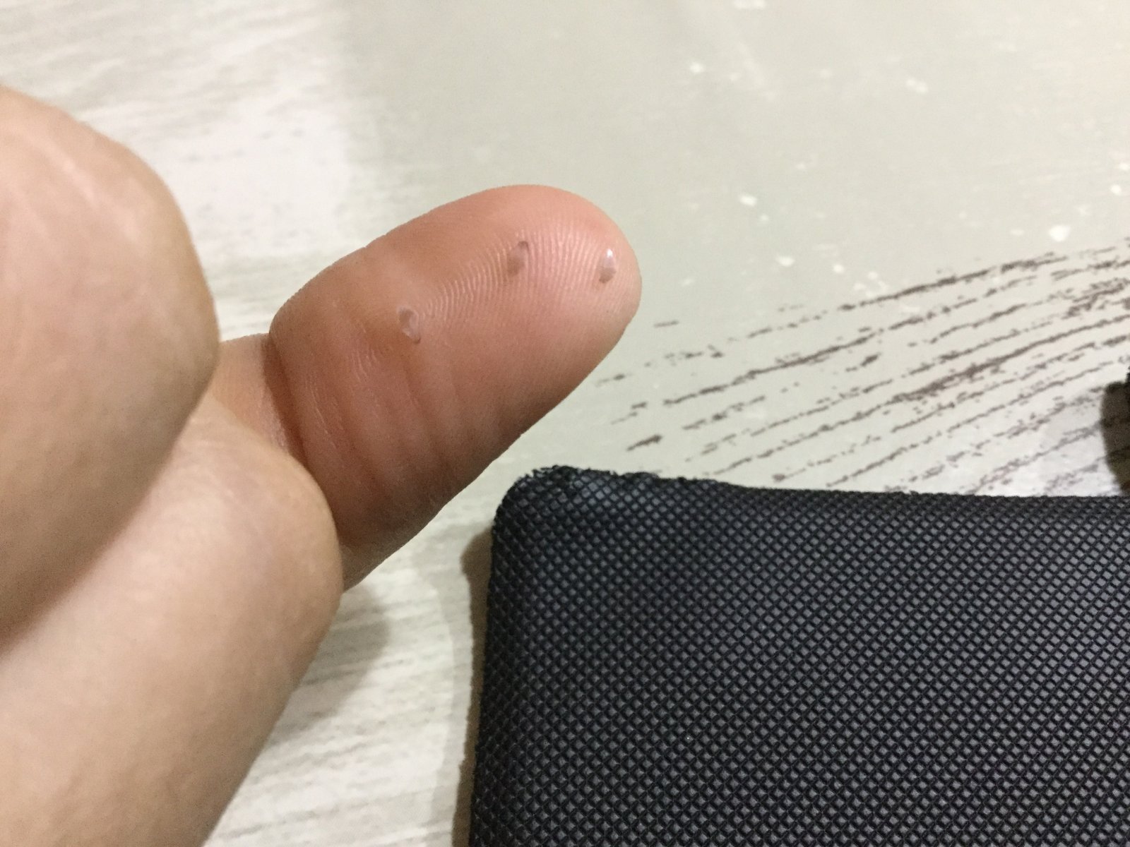 Pon mas fotos y a ser posible rodea la escama, lo único que puedo ver es como una escama retenida en un lado, pero no se si te refieres a eso