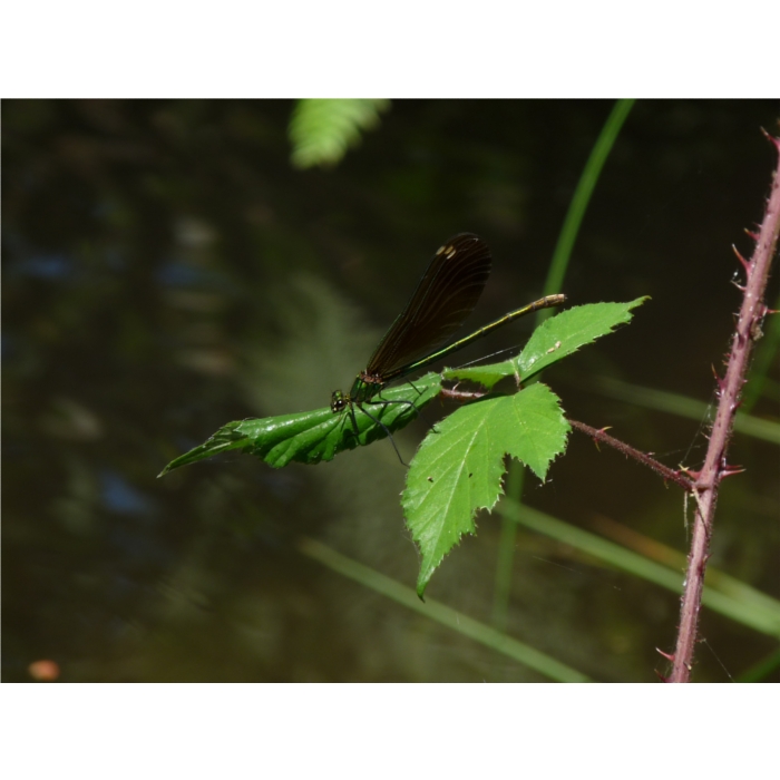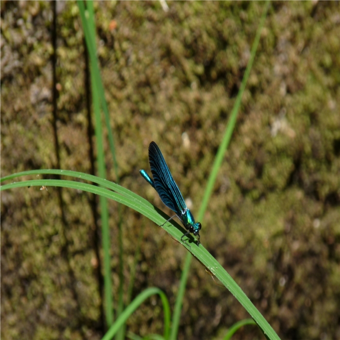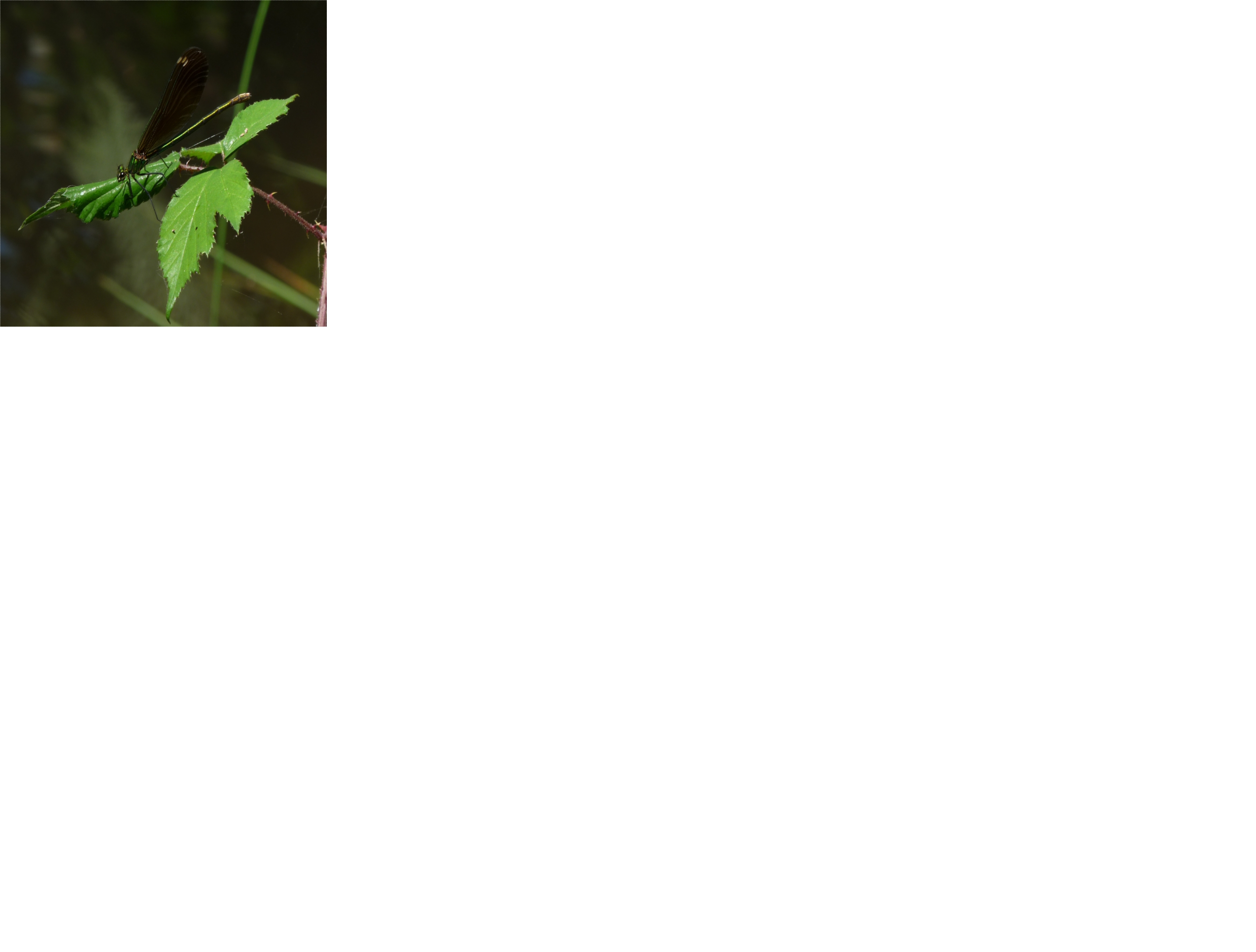 Te felicito por las fotos de los caballitos del diablo. La especie no la se, pero el genero es Calopteryx. Son típicos de cursos lentos de riachuelos y son muy timidos. Así que no son sencillos de fotografiar.