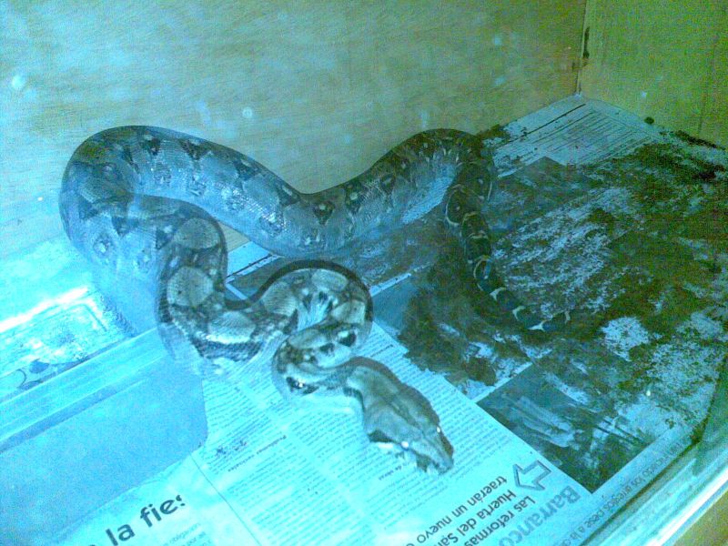 Recientemente me hice con una boa constrictor, y el chaval que me la vendio me comento que era constrictor constrictor, o al menos eso le habian dicho donde la compro. Es de una tienda de animales, supongo que es capturada y es muy agresiva, aunque se ve sana y come muy bien.