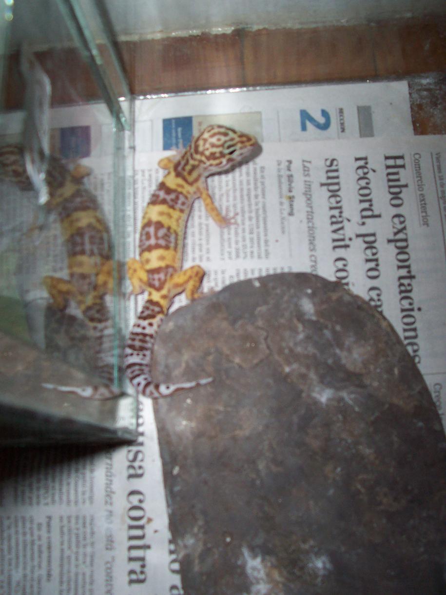 fotos de mi gecko, es chico aun pero esta creciendo my bien, una cosa q me parece rara es que el amarillo es muy fuerte