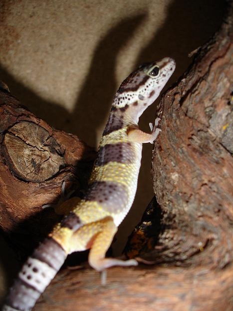 Por fín cuelgo fotos....Este es mi gecko leopardo, lo tengo hace menos de un mes,ha crecido algo desde que lo compré, come perfectamente...No tengo experiencia con los leopardos,así que me gustaría la opinión de los expertos