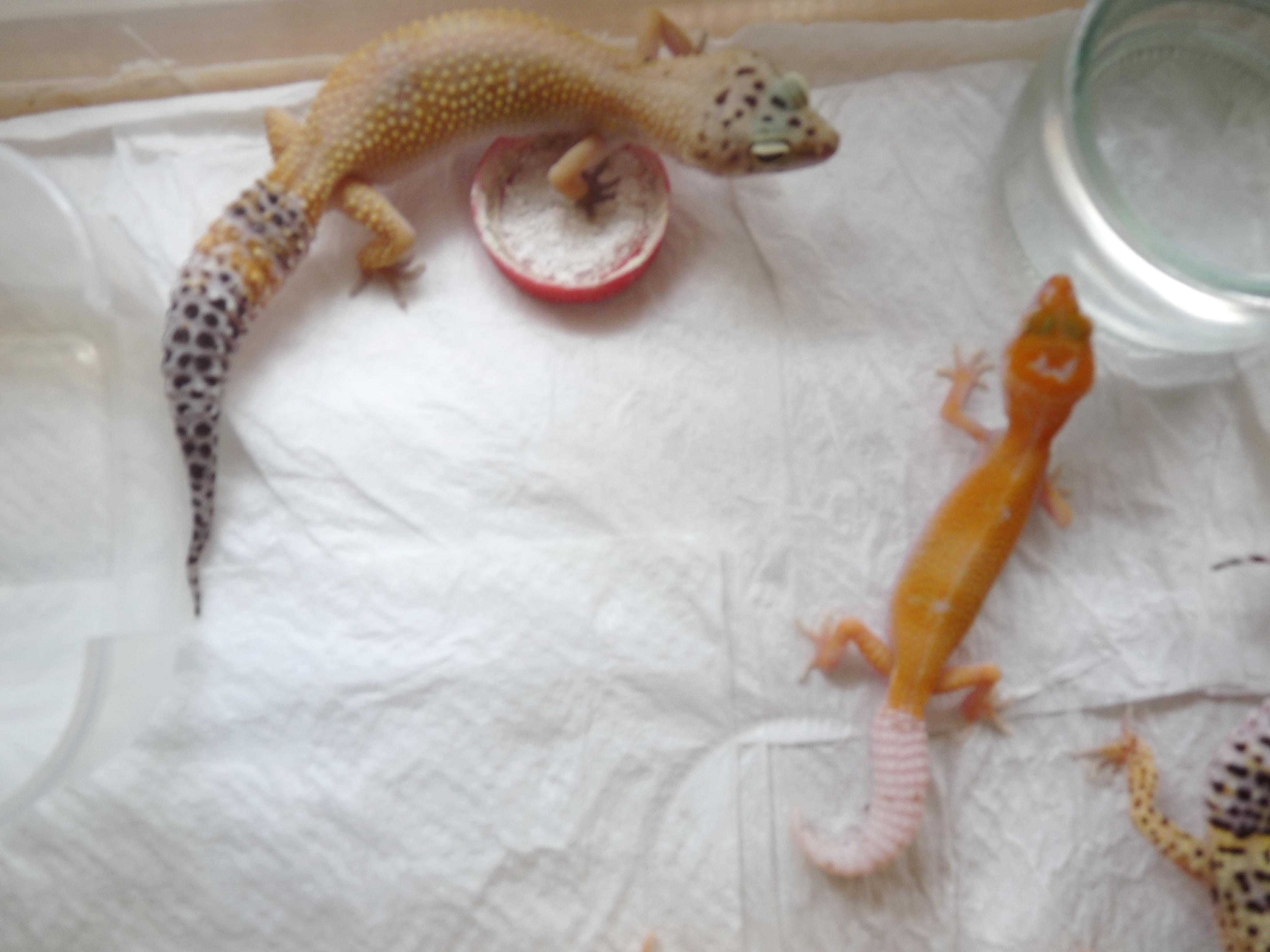 Aquí os dejo algunas fotillos más del geckillo que le compre a Raúl. Lo he puesto con otros para la foto para que se vea la diferencia de colores con una bell sunglow, super hypos,...