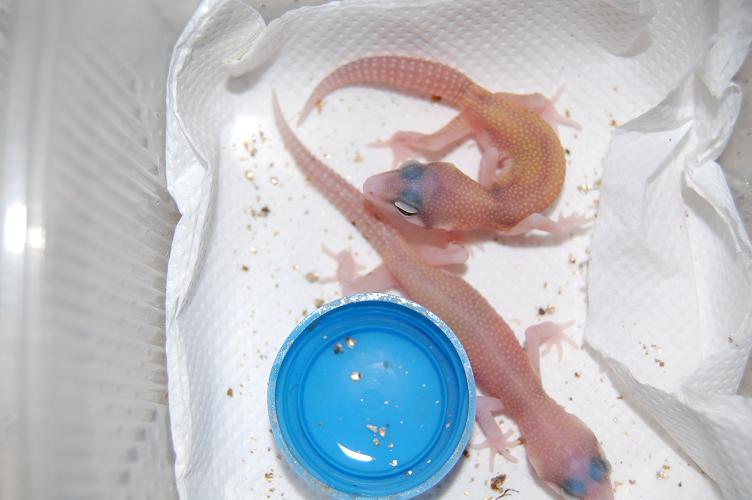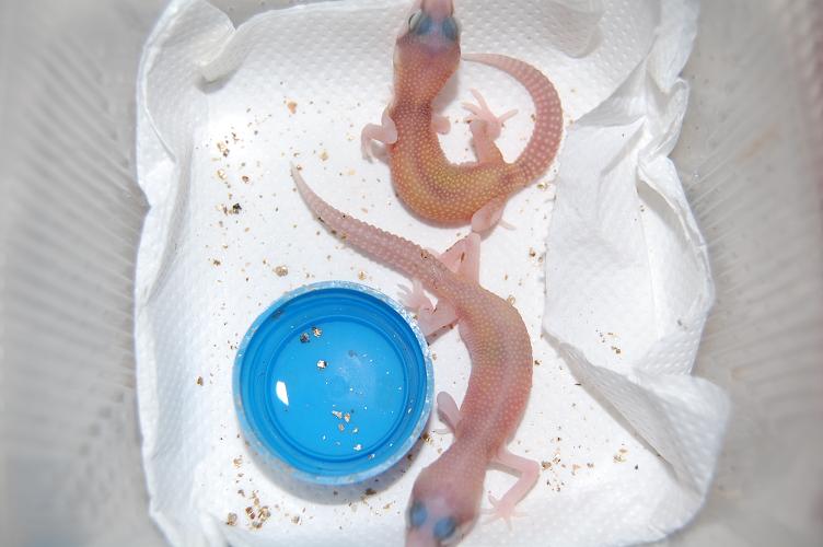 hola pues pongo dos fotos de las dos crias que han nacido hoy , que fases dirias que son yo la vedad que en eubles poco entiend , el macho era Aptor Het.Raptor , y la hembra Jungle Het.Raptor , yo veo a las crias diferentes ....