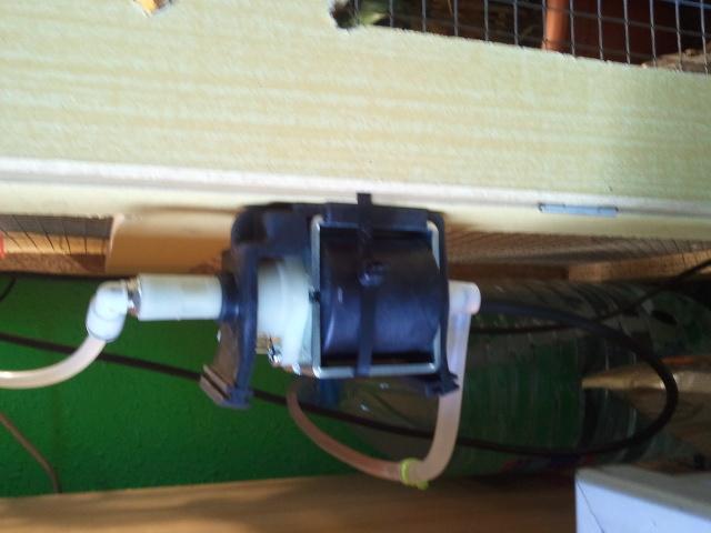Yo envolví la bomba con papel de burbujas y lo puse todo en una caja de cartón cerrada, únicamente con los agujeros para que entren los tubos. Y se atenuó un poco, pero no lo suficiente: a veces a los bichos les asusta y a mí me sirve como reloj de cuco, porque cuando suena sé qué hora es.