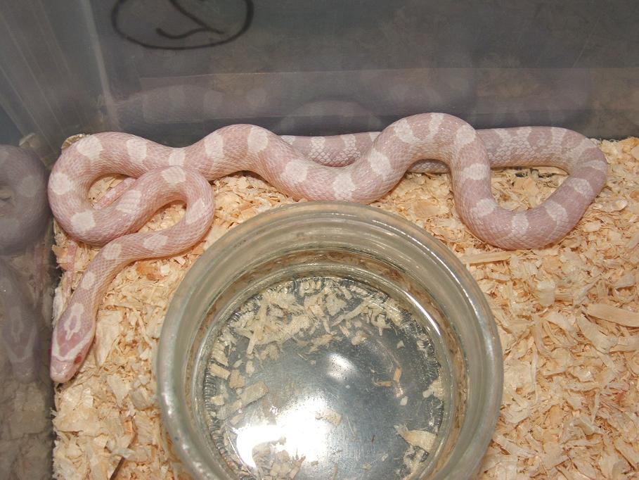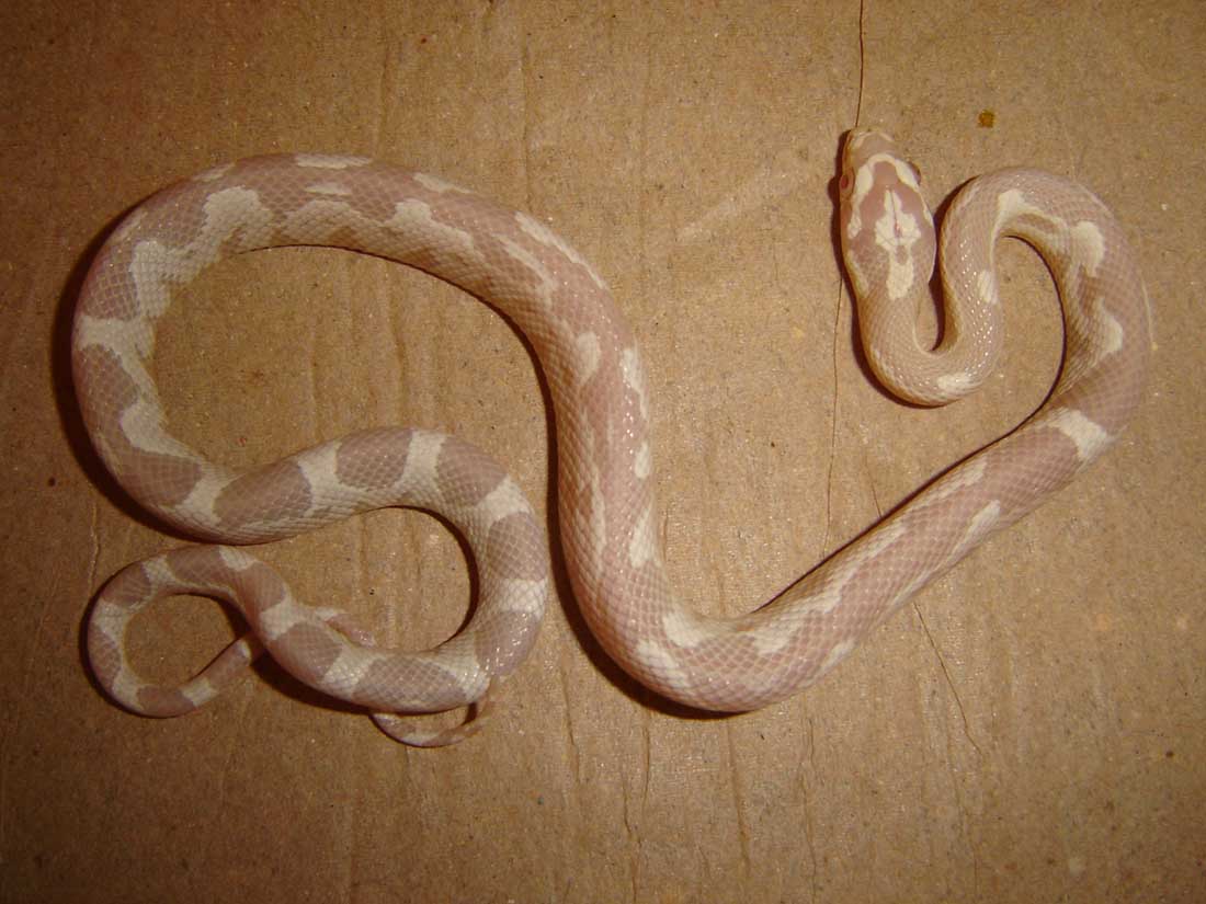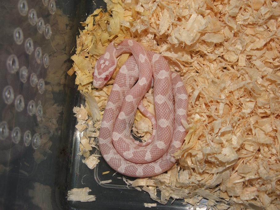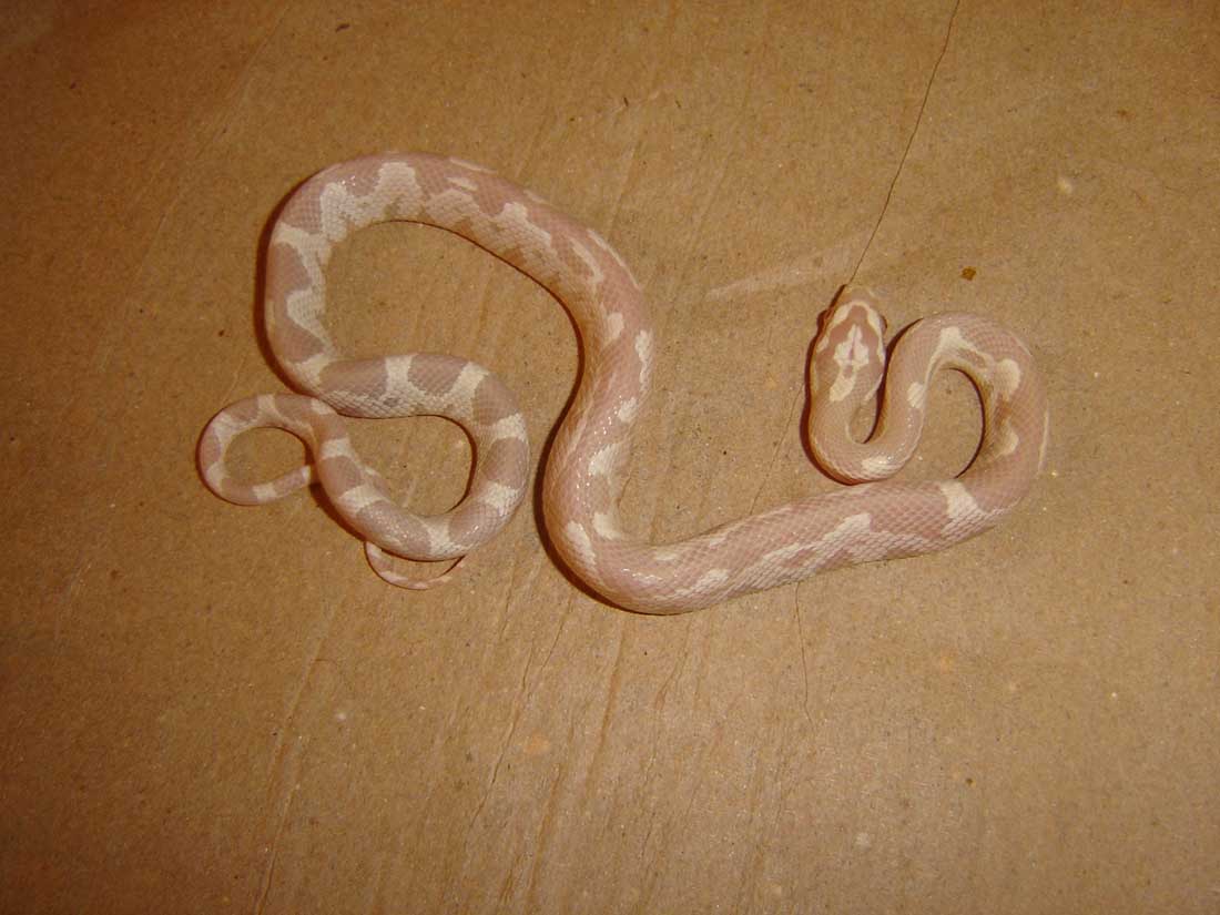 Dado que uno de los padres es una sunglow y por tanto es una albina que ademas porta hypomelanismo, si tienes suerte y tu snow llevase mutacion de hypo tambien, iagul esta cria te tira en coloracion hacia un rosado tipico de las strawberry. ya lo iras viendo. Si fuese el caso tu serpiente ganaria en valor ya que portaria a la vez :amlanismo, aneritrismo e hipomelanismo, independientemente del patron que puede ser por azar ya que las aztec y zig-zag no son mutaciones de patron, sino seleccion sucesiva de patrones anormales hasta lograr dicho patron. (juntando animales con patrones extraños, generacion tras generacion, juntando siempre los mas raros, al final se obtienen este tipo de fases)