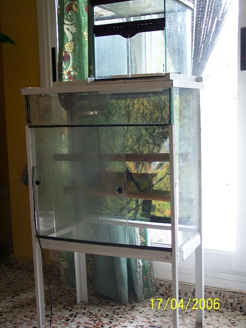 muchas gracias alex... aki te dejo otro de mis inventos k estoy en el aun. , un terrario reformado, aun falta acabar abajo van ruedas y un taper a medida con ruedas tambien, me facilitara el limpiado del encharcamiento para las viridis, y algo mas de espacio para ellas