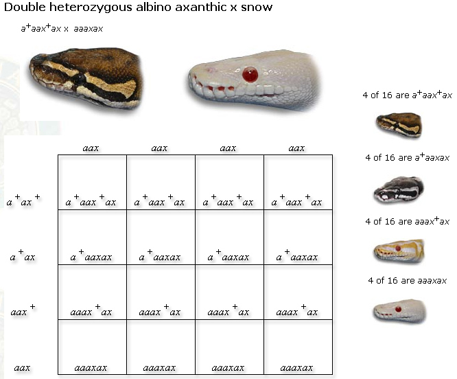 cruzar dos co dominantes p.e. fire x pastel = 25% nominal, 25% Fire, 25% Pastel y 25% fire/pastel (Nova). Dispues esta tienes que cruzar otra vez dos co dominantes p.e. Nova x Spider= Nova, Fire, Pastel, Nominal y Fire/Pastel/Spider etonces tienes un animal con tres diferentes fases dentro.