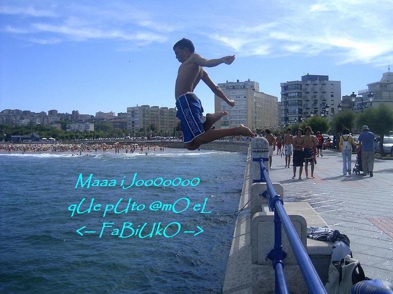 P.D.: FaBiUkO, no te molestes por lo que te he dicho, pero no es nada agradable ver como sacan a nadie del agua por hacer el indio con sangre por todas partes, te lo aseguro! y no es la primera vez que lo veo... y por cierto, un buen amigo mío tiene a un colega suyo en silla de ruedas por tirarse de cabeza al mar, te lo digo por si quieres tomar noda de eso también... que muchas veces nos creemos más invencibles de lo que somos. Todo eso te lo digo con todo el cariño, ¿vale? que para las broncas ya están los padres...