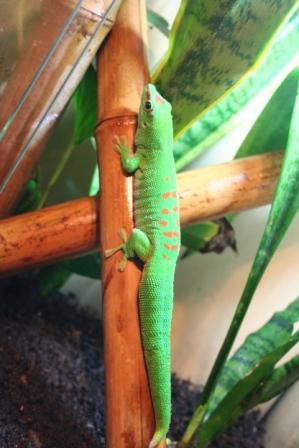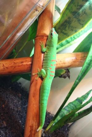 El.... grandullon, con una cabeza y cola mas grande que las crias, manejable, tranquilo y pasota, le gusta un paseo de vez en cuando. Muy voraz y muy activo sexualment!!! Cuando lo compre nada mas llegar lo meti en el terrario y zas.... se fue a por la hembra. Nada de aclimatacion ni estres ni leches....