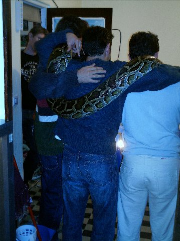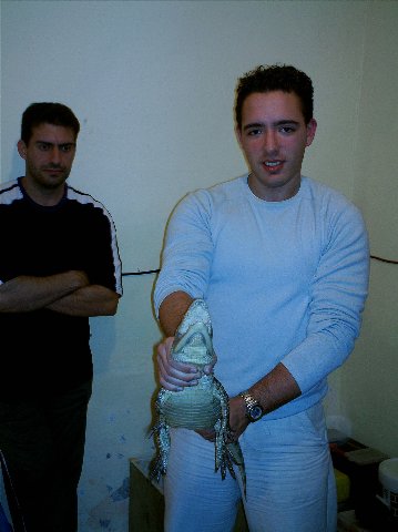 Deciros que lo primero lo pasamos muy bien, y aunque voy a estar liadillo unos días y algo desconectao, no puedo dejar de poner estas fotos, la primera, ya está vista y es el amigo Juanjo haciendo valer su palabra y dando el famoso beso al animalito, y la segunda, no menos interesante, muestra que, ciertamente, el colega no se cagó. :mad: