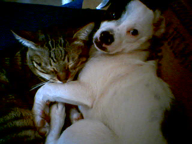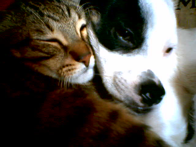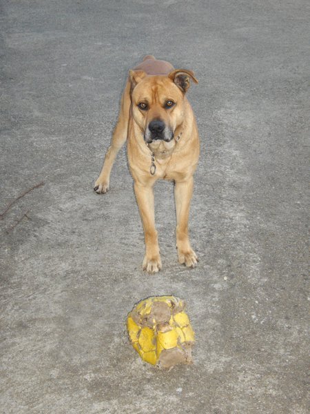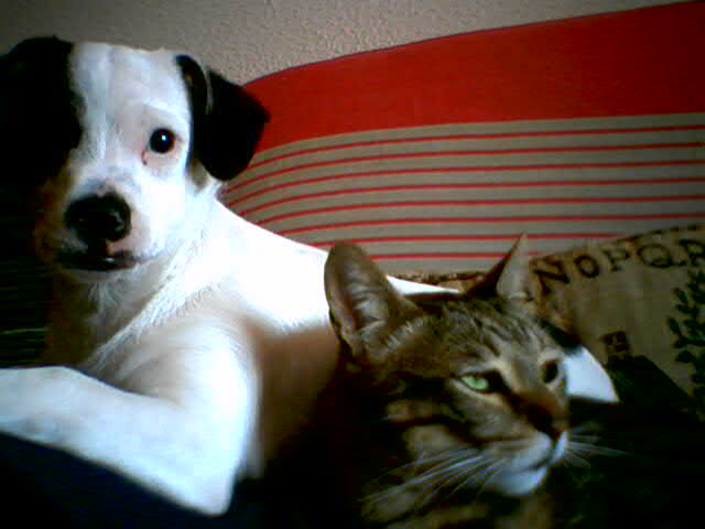 Aquí van las fotos de la fiera de la casa, Pirata. Se ha criado con gatos desde que era un cachorrete, así que se ha convertido en fiel defensor gatuno (incluídos los gatos de la calle).