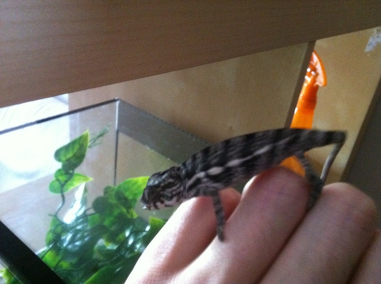 Ahora está en un transportín pequeño, mientras que seca la fibra de coco de su faunabox. Se lo montaré lo más parecido a la hembra posible, ya que con ella me ha ido muy bien. El vendendor me dijo que come vivo... con que le dejaré pasar un poco de hambre y lo pasaré a muerto, como hice con la otra (si pude con esa puedo con este).