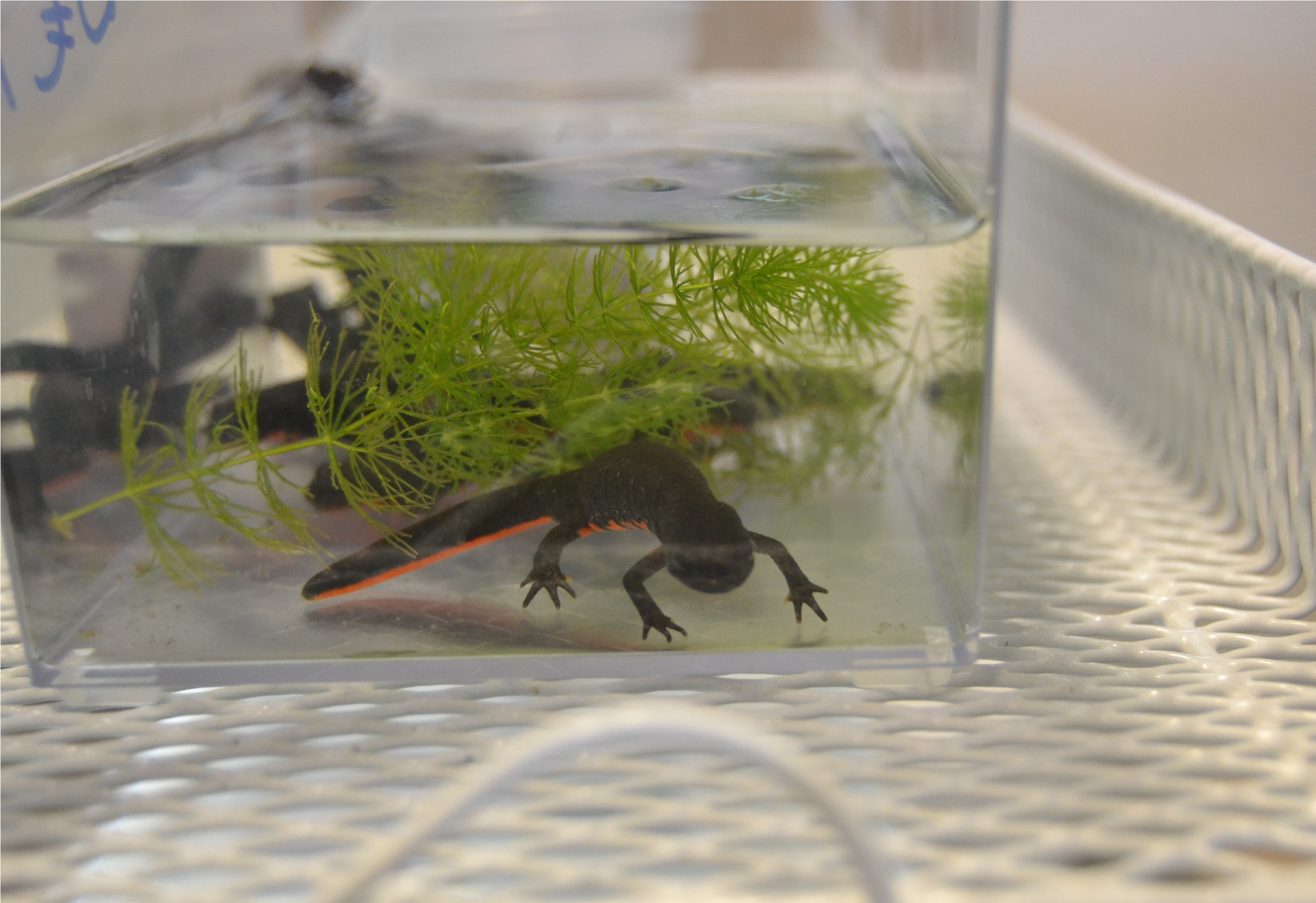 Había unos tritones muy chulos aunque no recuerdo la especie. Eran de vientre rojo.
